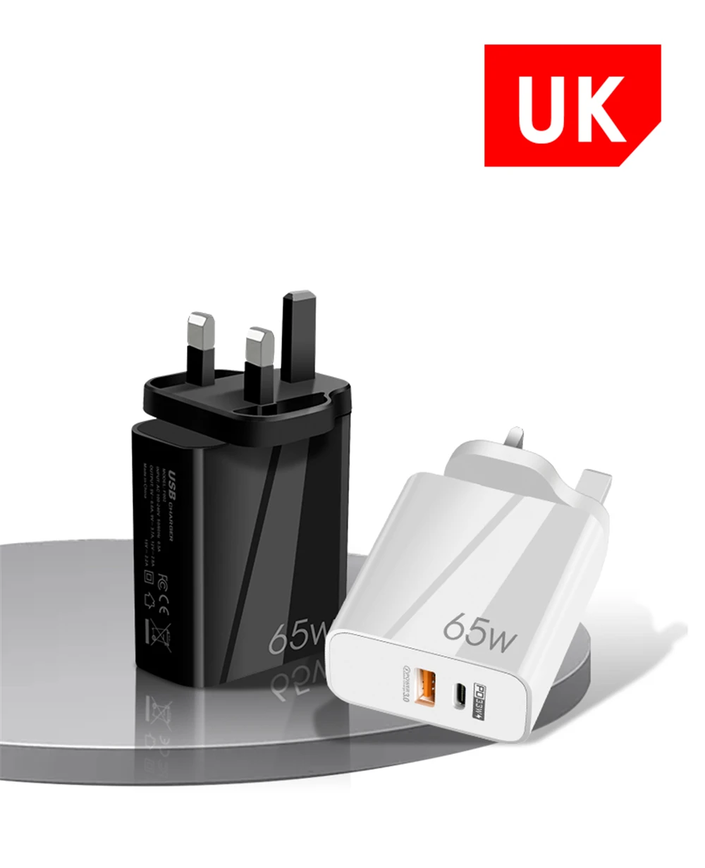 Зарядное устройство Lovebay, 65 Вт, сетевой адаптер сетевого типа с USB Type-C PD QC 4,0 для быстрой зарядки с европейской вилкой, американской и британской вилкой для iPhone 13, 12, Xiaomi 12, Samsung и т. д.