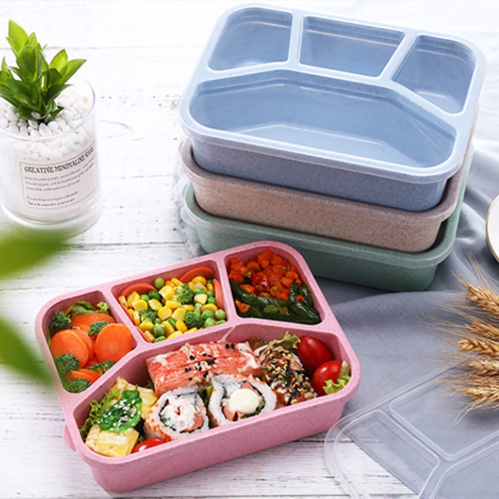 Ланч-бокс из пшеничной соломы, 4 ячейки, Ланч-бокс в японском стиле, для студентов, квадратные офисные работники, коробка для бенто