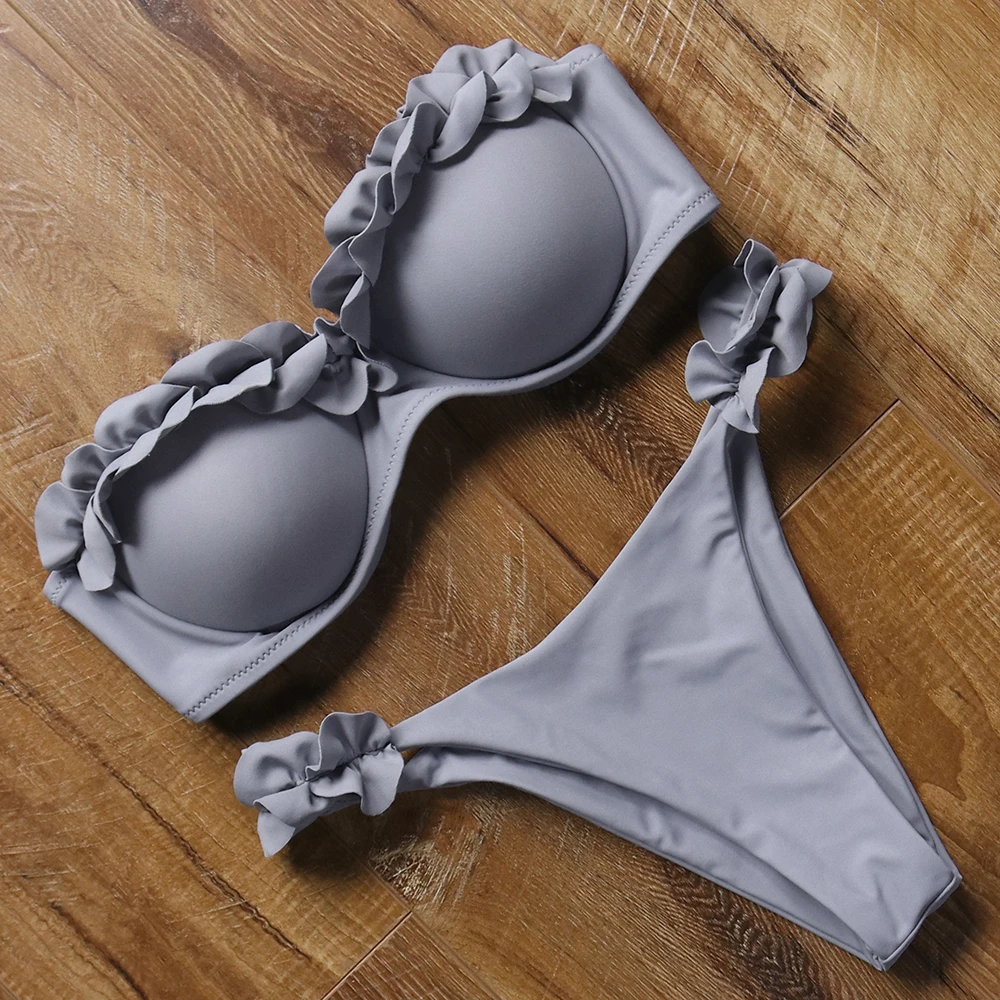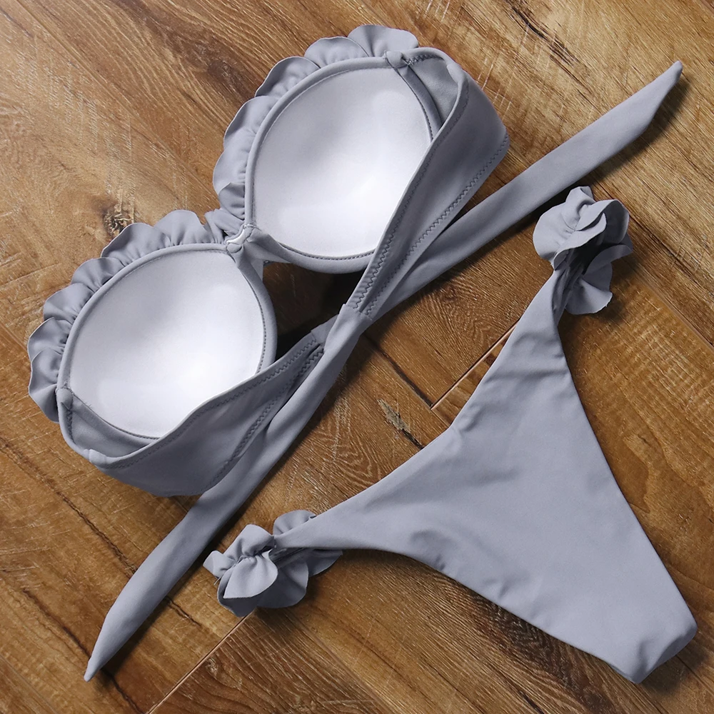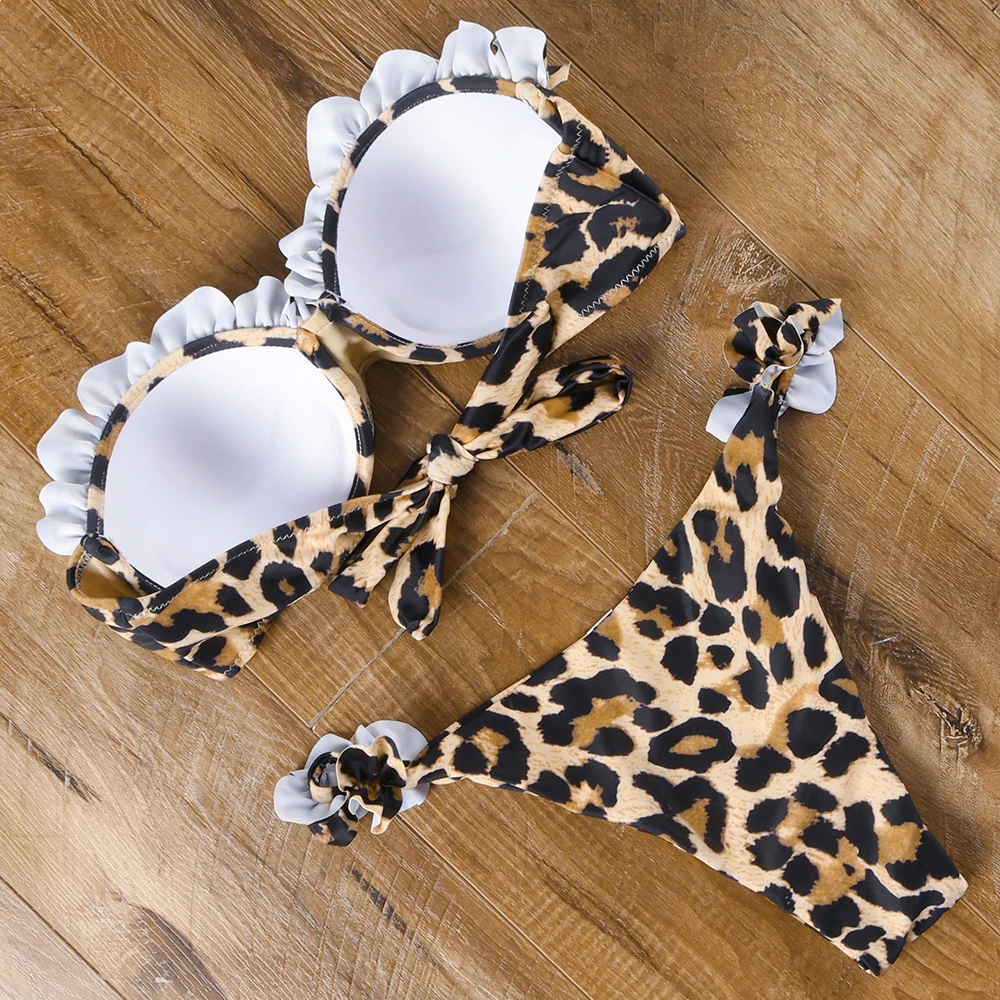 Женское бикини-бандо, купальник с открытыми плечами, сексуальный купальник с оборками и леопардовым принтом, стринги, купальник из двух частей, женская летняя пляжная одежда 2022