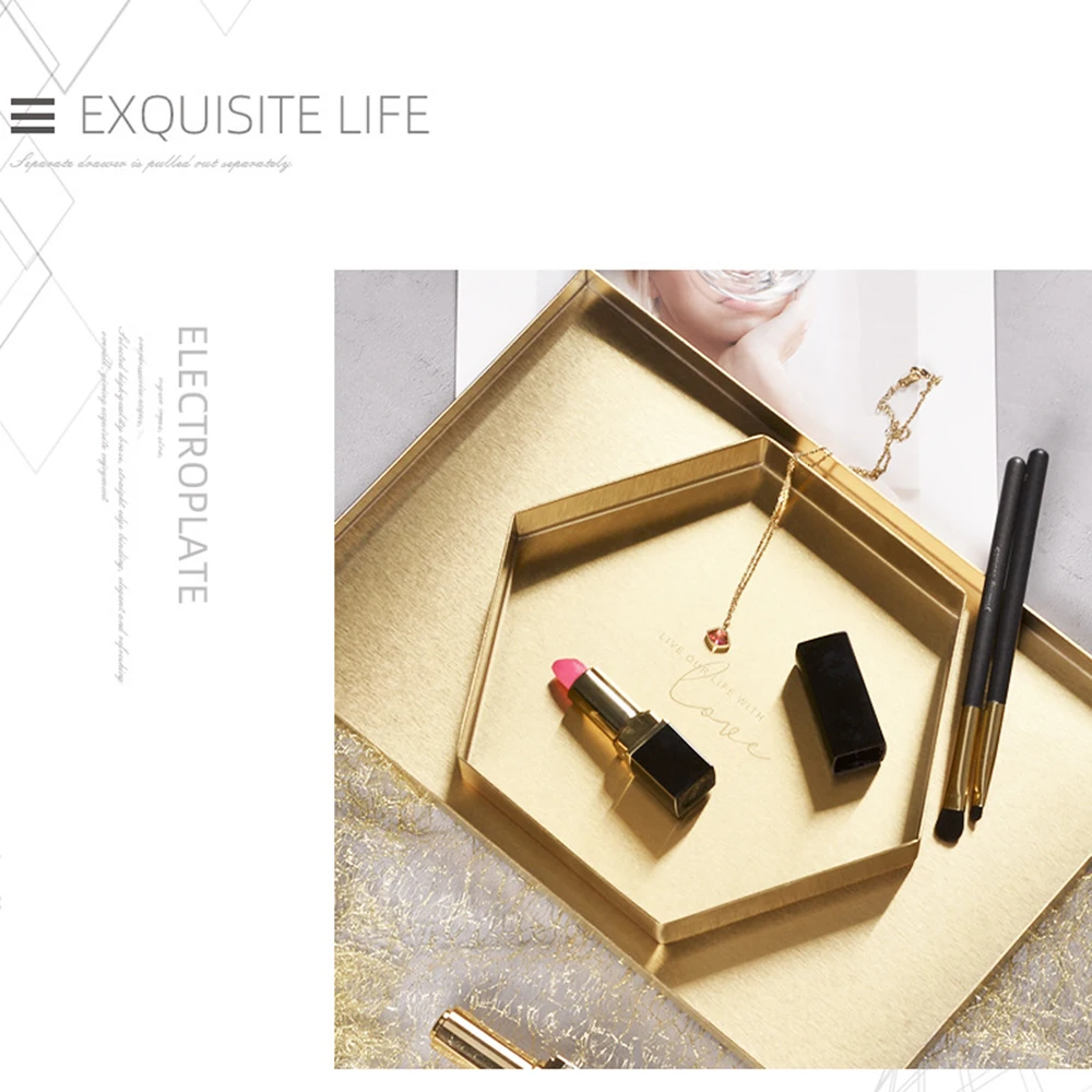 Лоток для хранения, органайзер, Золотой декоративный лоток, роскошная тарелка, Геометрическая тарелка для хранения ювелирных изделий, демонстрационная тарелка, аксессуары для домашнего декора