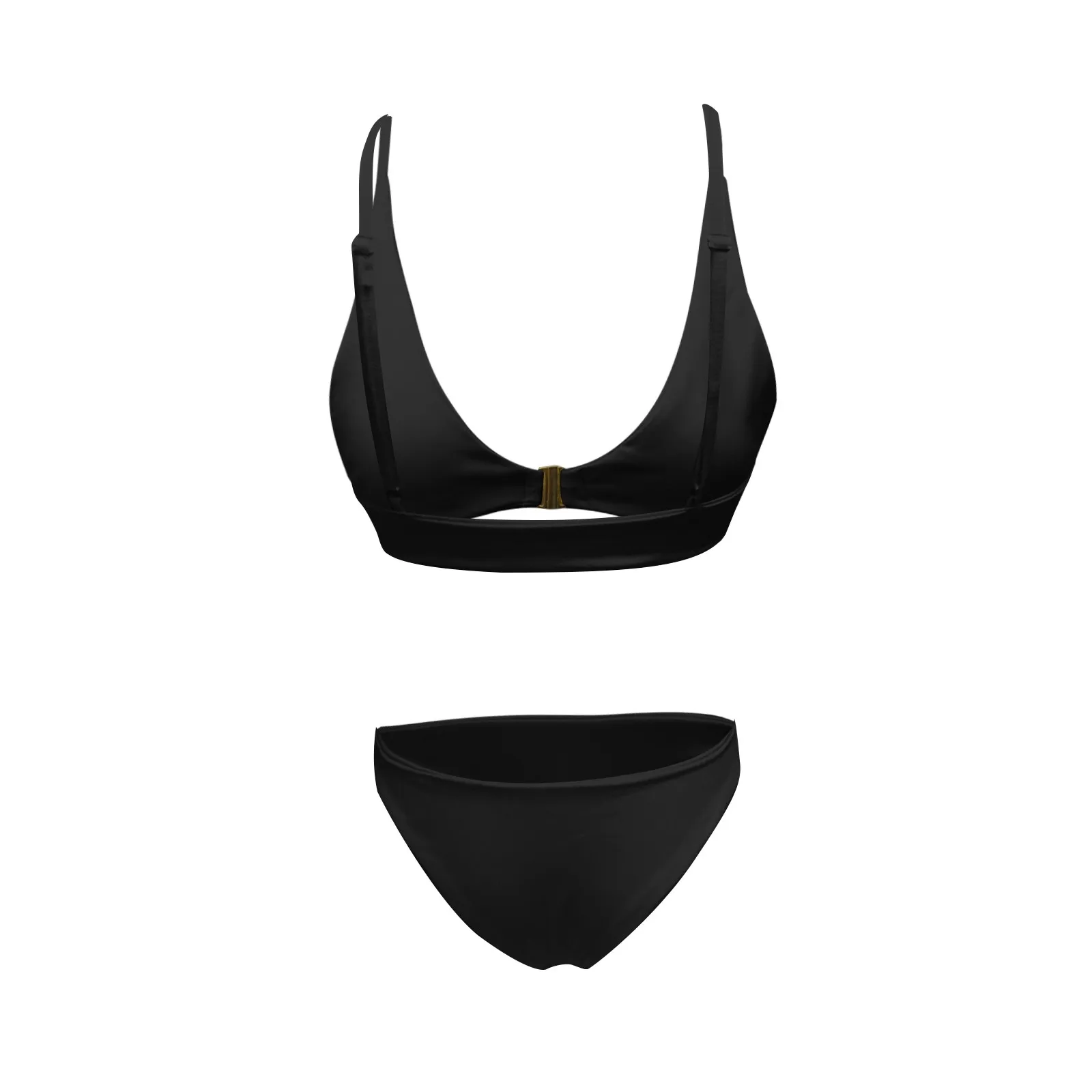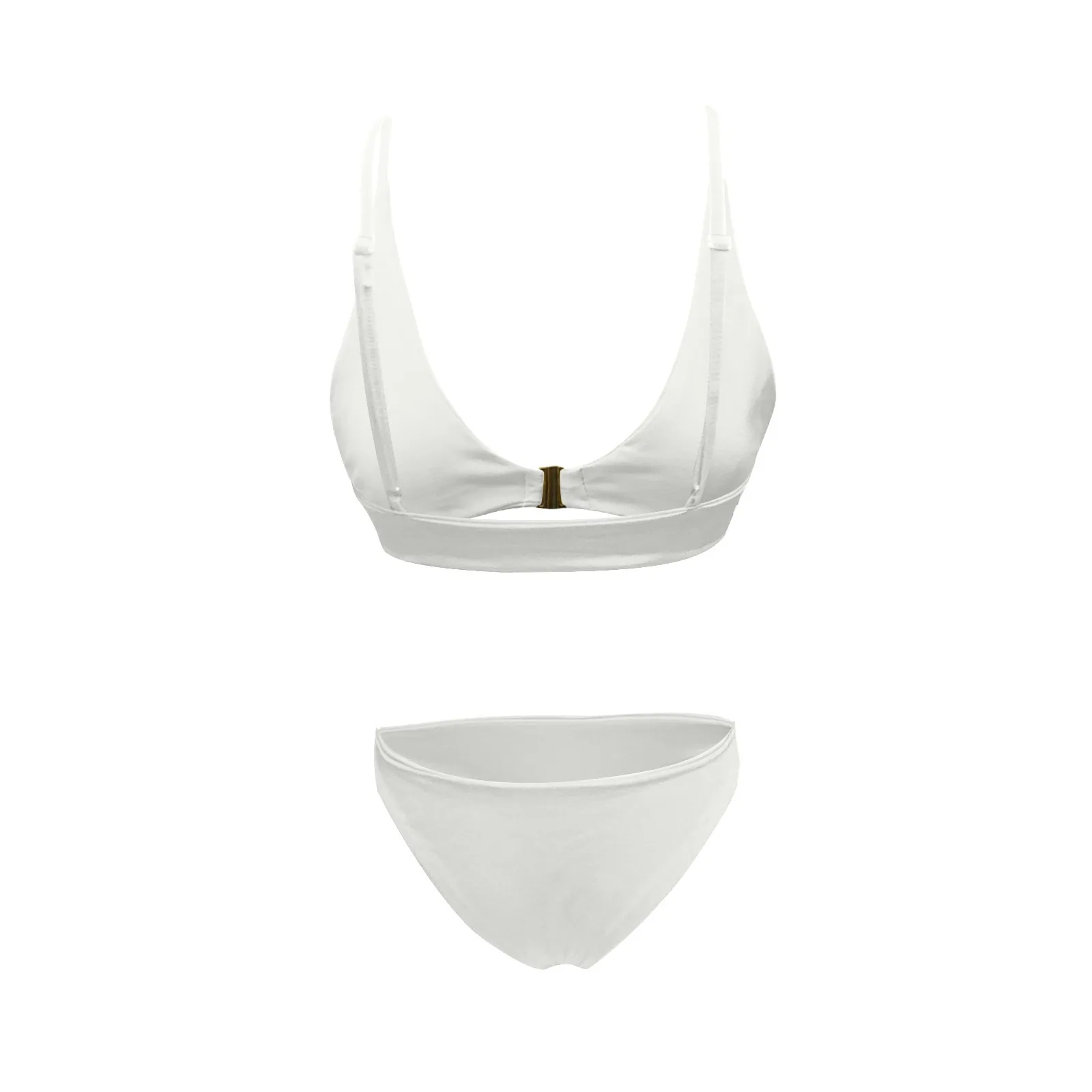 Женский летний сексуальный купальник-бикини, купальник с глубоким круглым вырезом и металлической пряжкой спереди, бюстгальтер с низкой талией и высоким вырезом, новейший однотонный купальный костюм