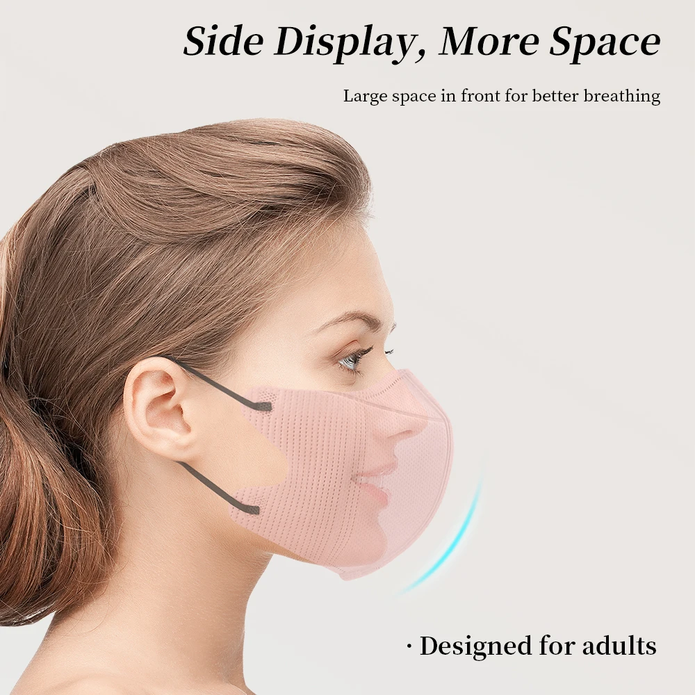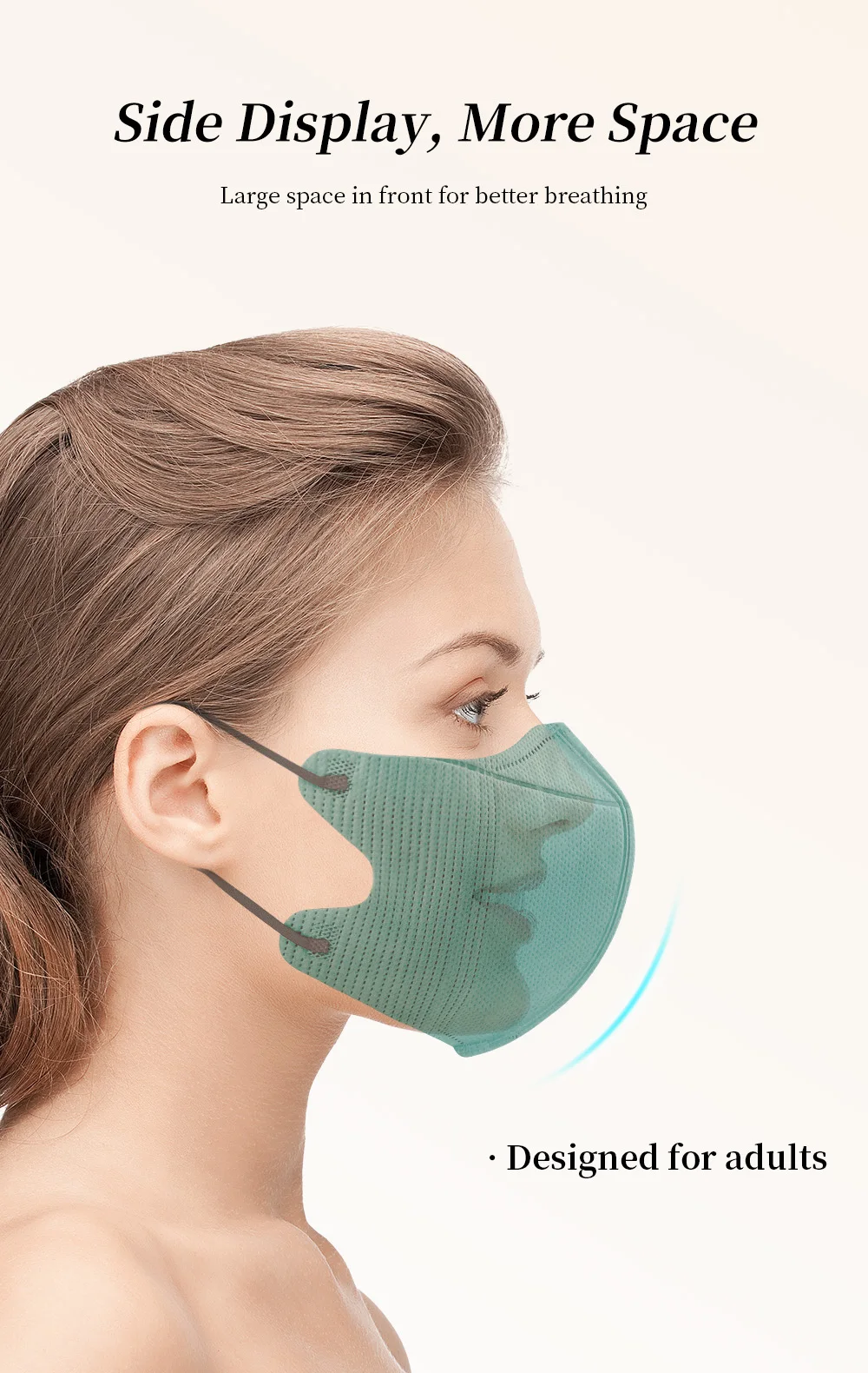 Размер относительно маленький, который больше подходит для женщин и мужчин. У этой маски нет мостика для носа, 4 слоя.