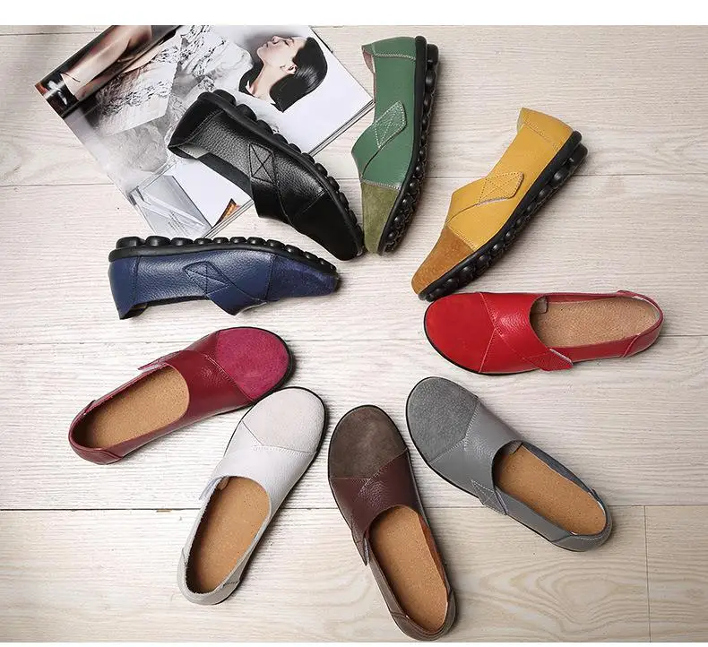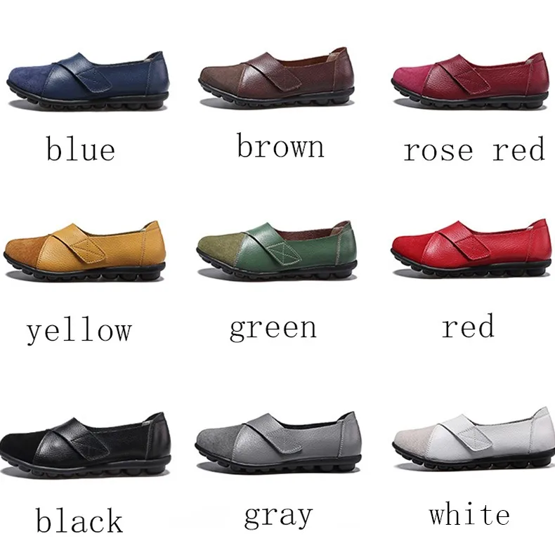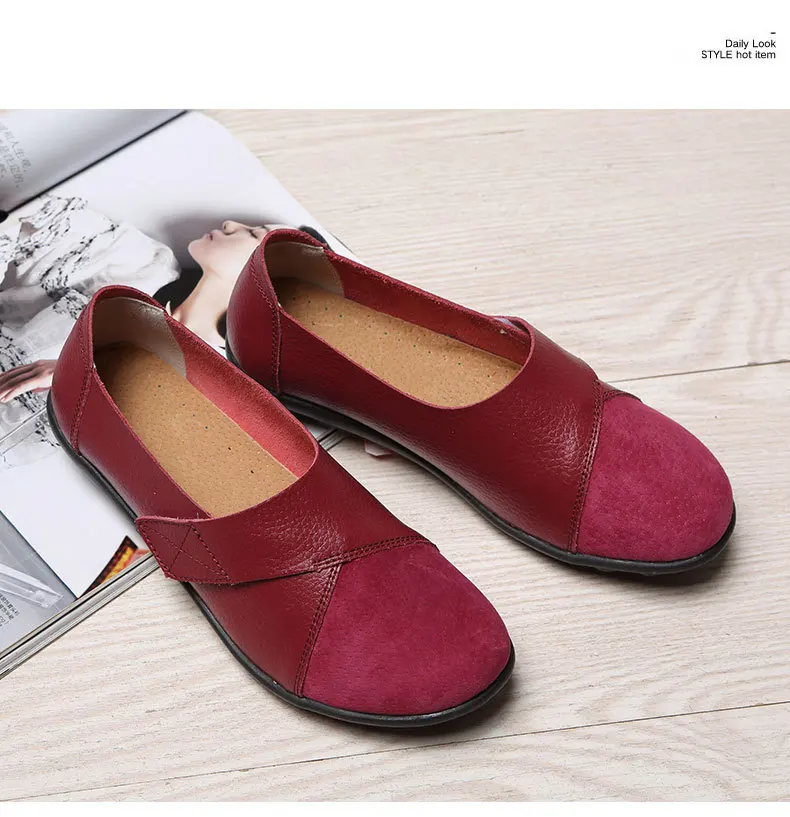 Туфли-лодочки женские из мягкой натуральной кожи, Мокасины, без каблука, на липучке, топ-сайдеры, большие размеры