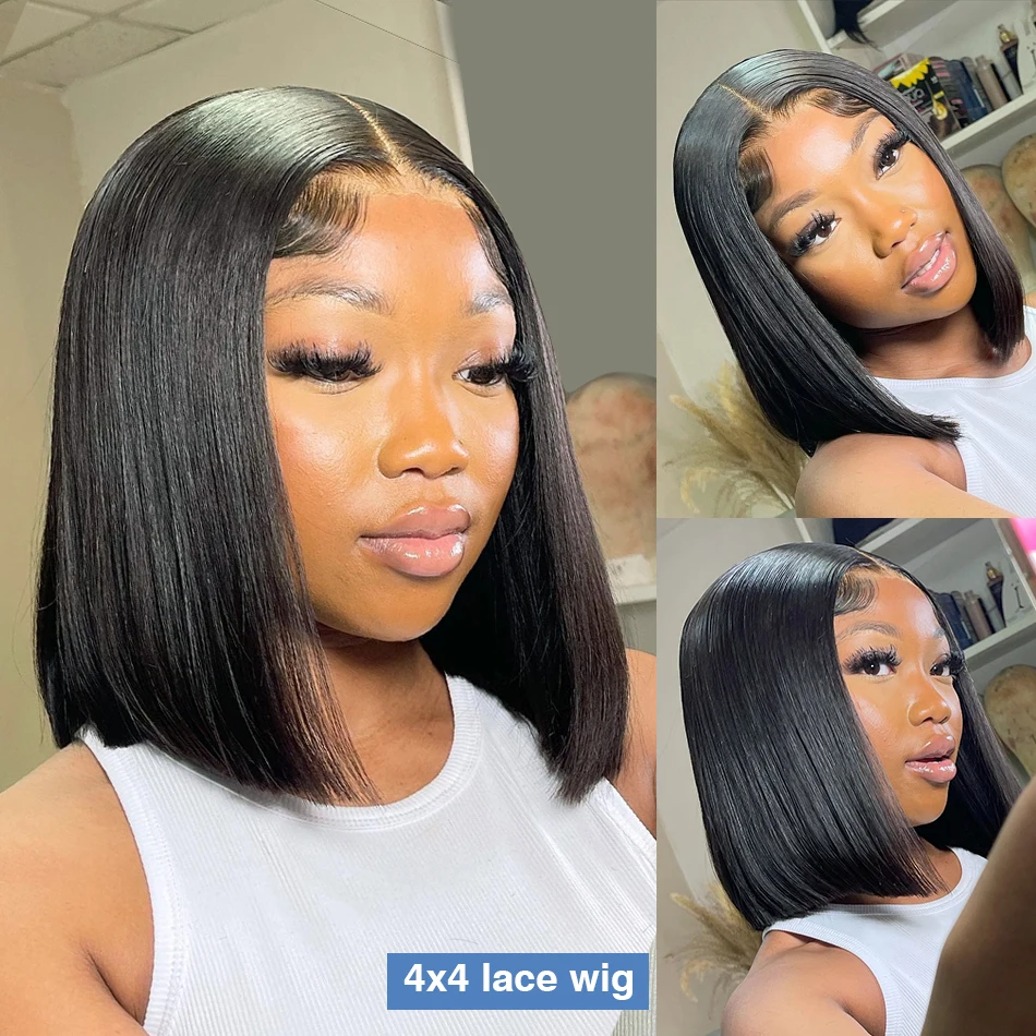 Короткий 13х4 кружевной фронтальный парик из человеческих волос, парики из бразильских волос Remy 4x4, парик для женщин, 180% плотность, распродажа