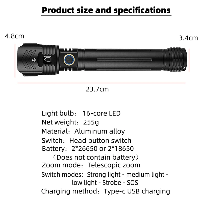 Ффонарь XHP160, 10000 мА ч светодиодный 5 режимов, перезаряжаемый ...