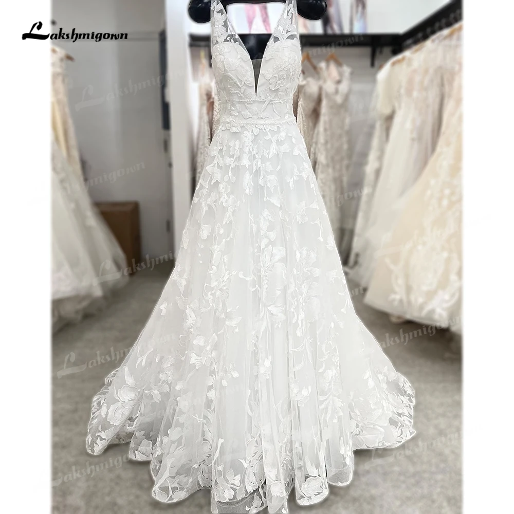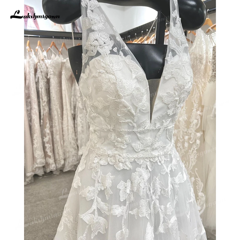 Винтажное свадебное платье в деревенском стиле с V-образным вырезом и открытой спиной
