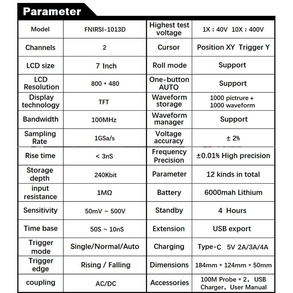 Цифровой планшетный осциллограф FNIRSI 1013D, Профессиональный осциллограф, частота дискретизации 100 МГц * 2 диапазона, ширина 1 Гвыбс, осциллограф с сенсорным экраном