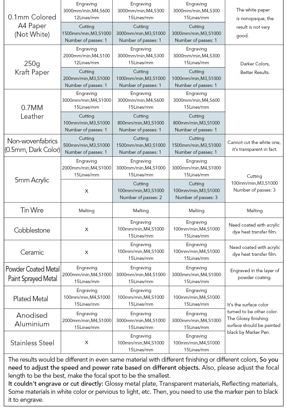 Computer OSWin XP, Win 7, Win 8, Win 10 (LaserGRBL) Mac and Linux (LightBurn)