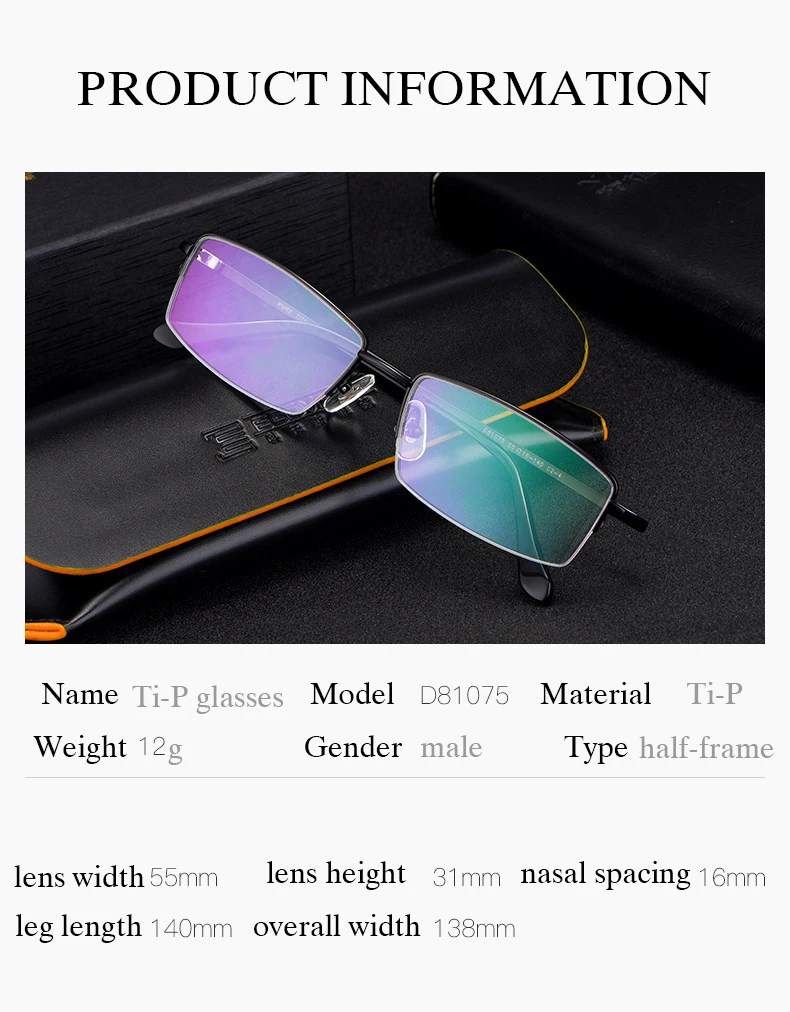 Очки мужские с полуободковой оправой, чистый очки в титановой оправ...