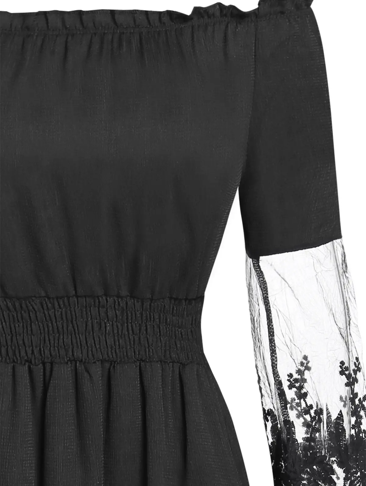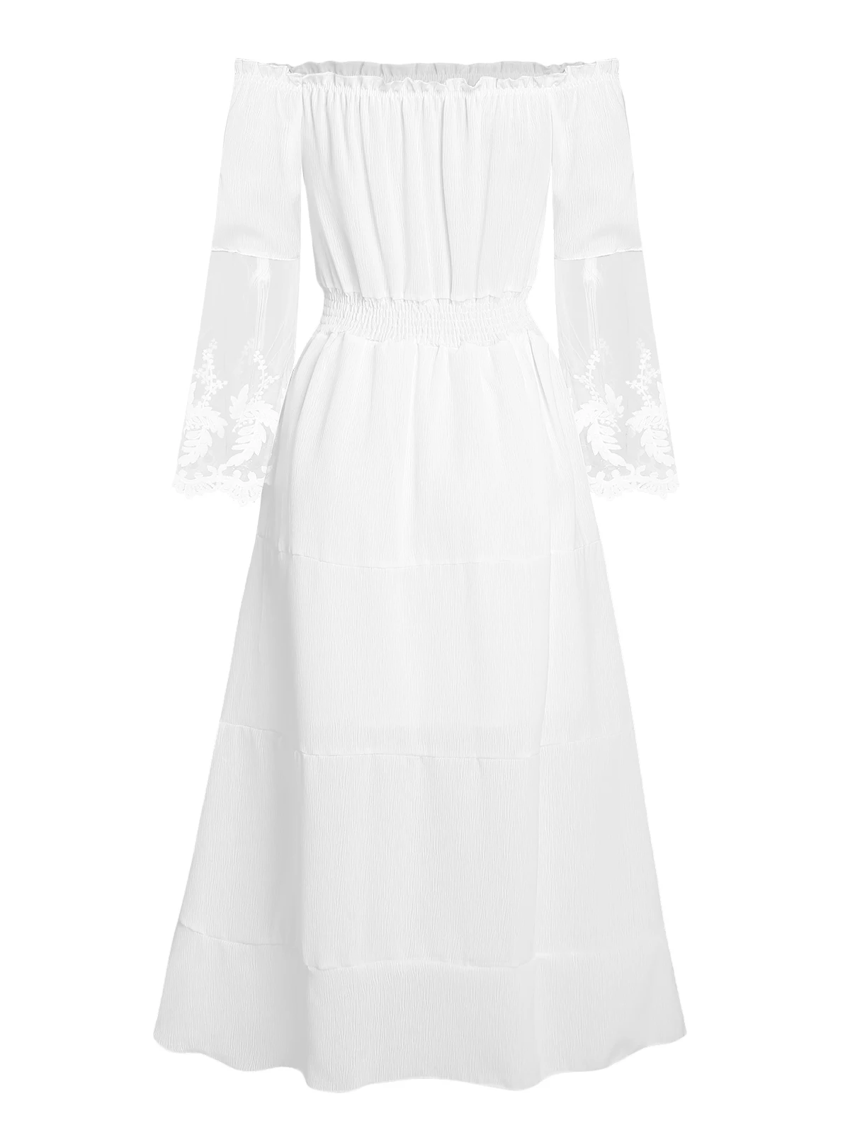 Номер моделиOff The Shoulder Embroidered Mesh Midi Dress