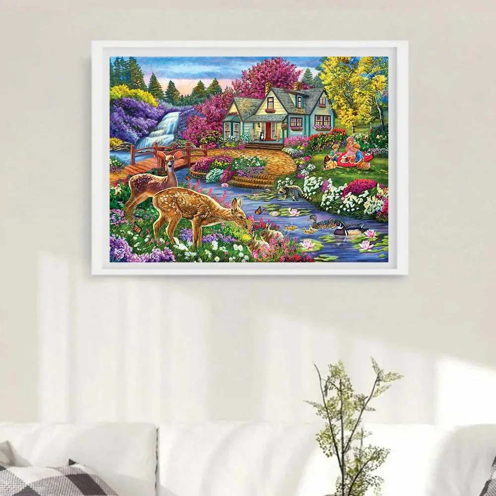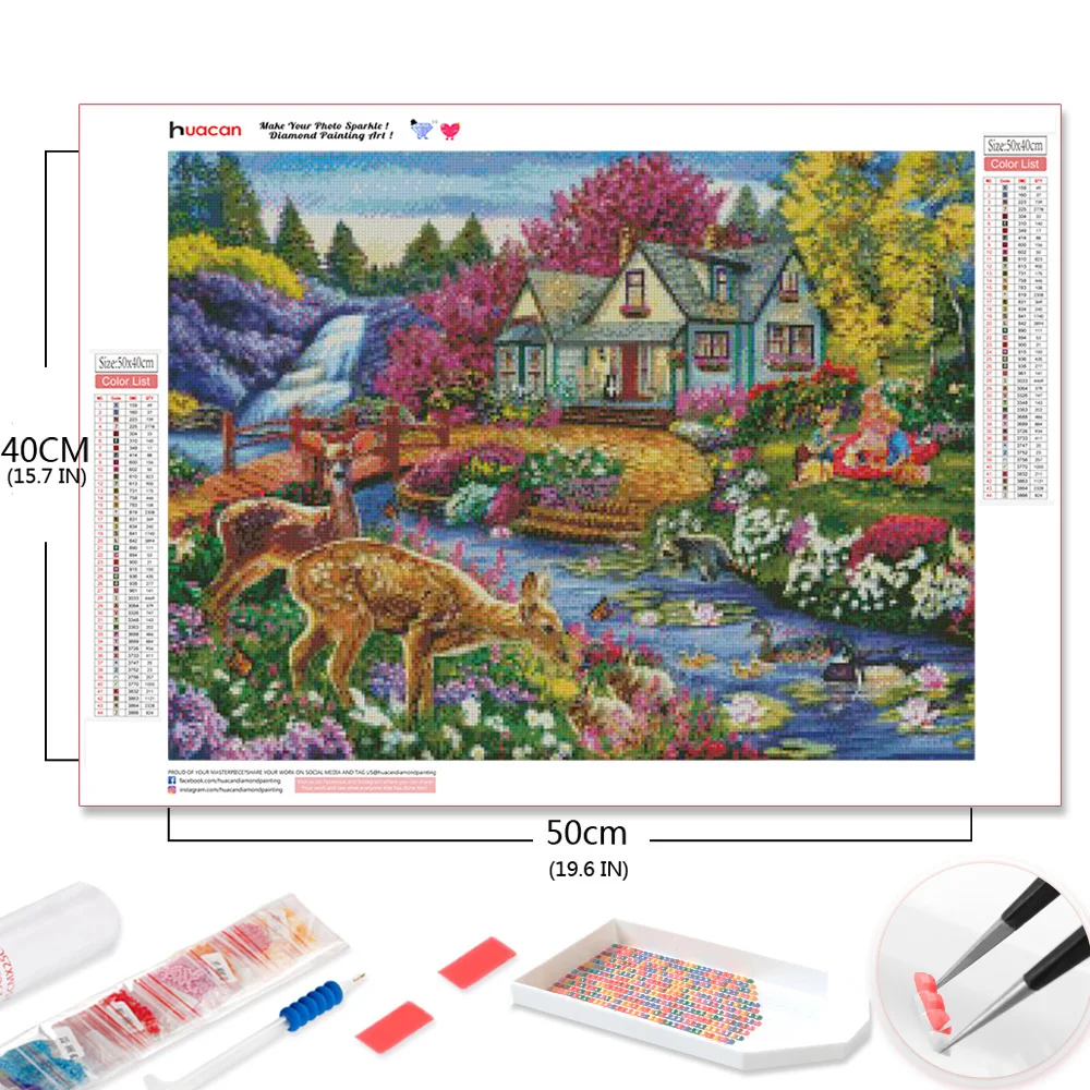 Алмазная живопись HUACAN, ландшафтный дом 5D DIY, искусственная река, стразы для фото