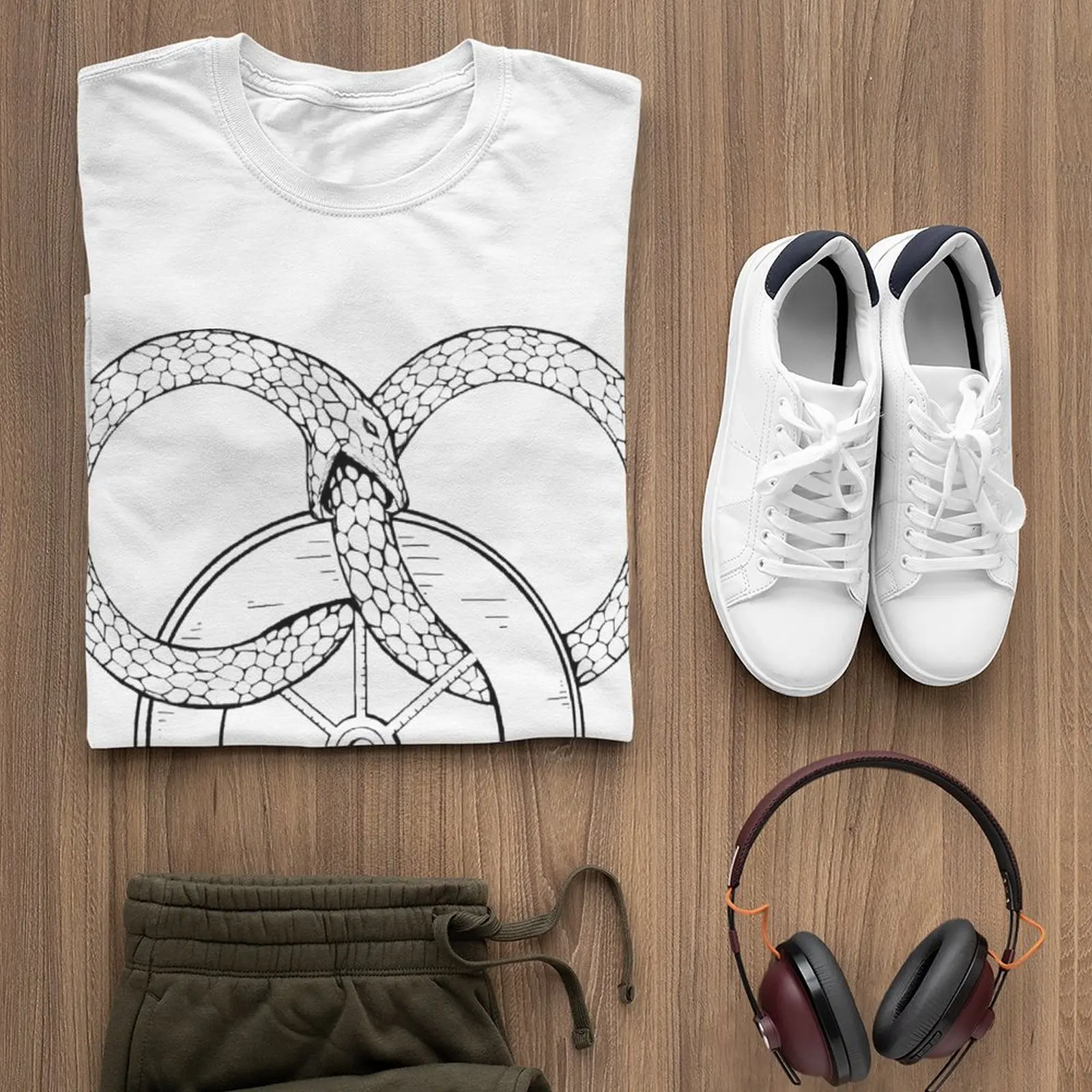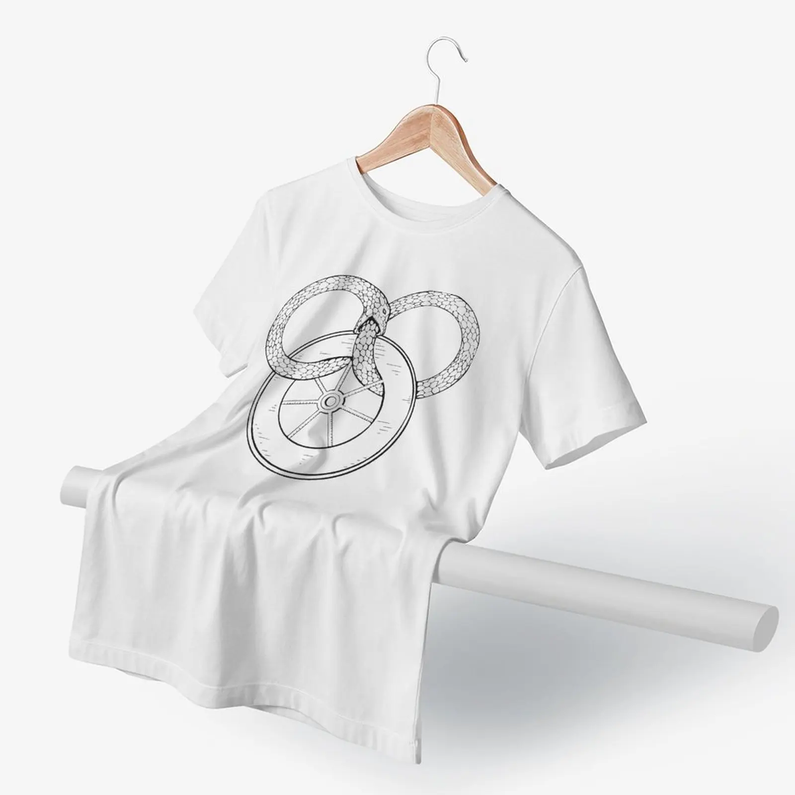 Мужская футболка с принтом змеи и колеса, потрясающая футболка в стиле хип-хоп с круглым вырезом, большие размеры