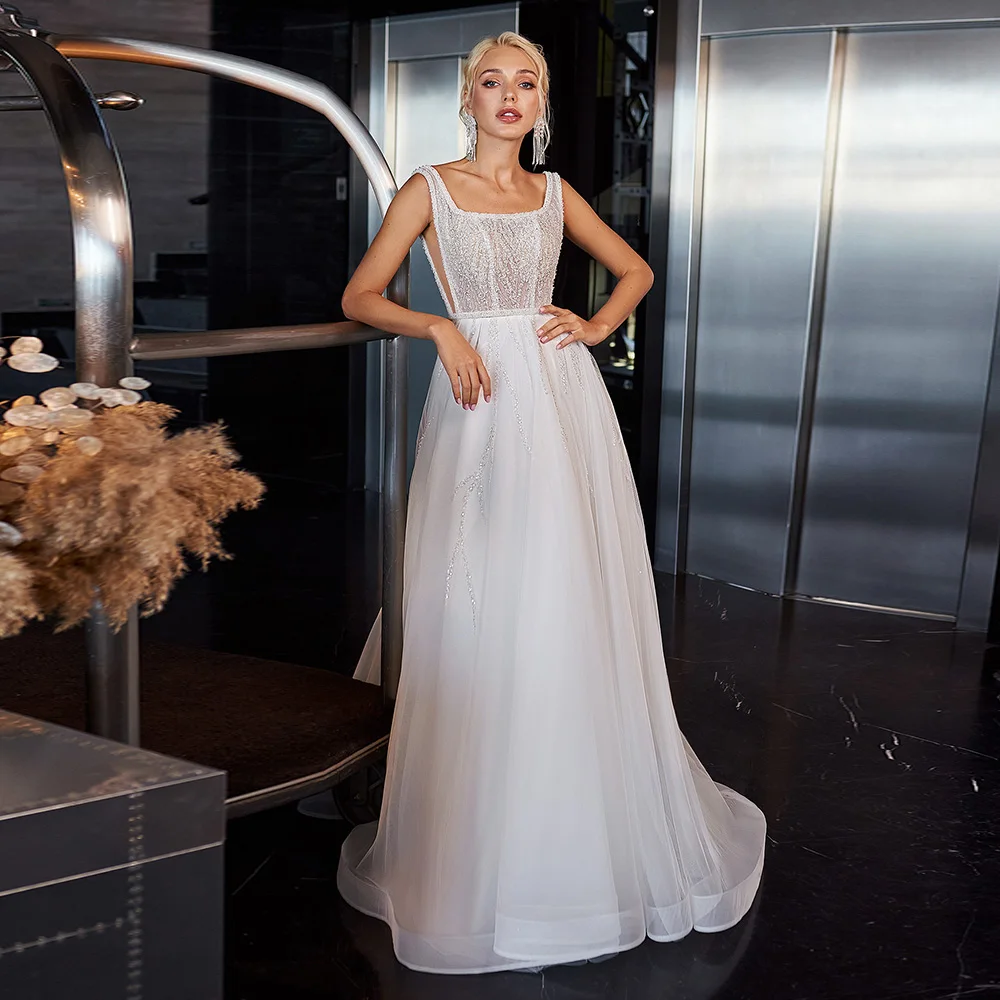 Женское свадебное платье до пола It's yiiya, белое Тюлевое платье с блестками, квадратным вырезом, без рукавов, на молнии, со шлейфом на лето 2019