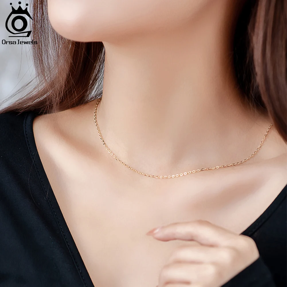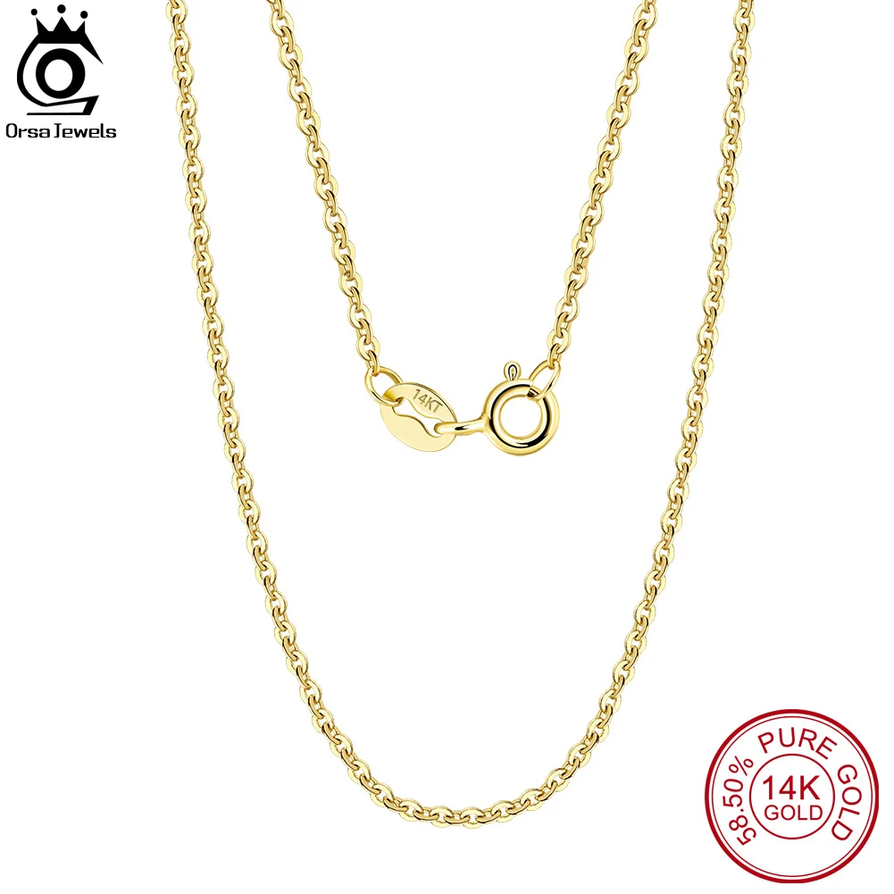 ORSA JEWELS 14K твердая Золотая 1,01,2 мм Бриллиантовая цепочка для кабеля ожерелье AU585 желтаябелаяРозовая золотая цепочка для шеи женские ювелирные изделия GC02