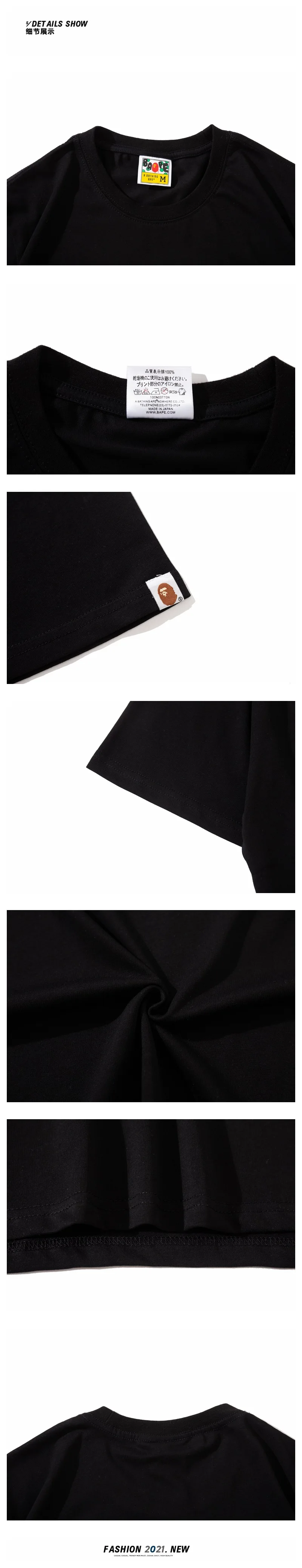 Хлопковая летняя футболка унисекс BAPE с коротким рукавом