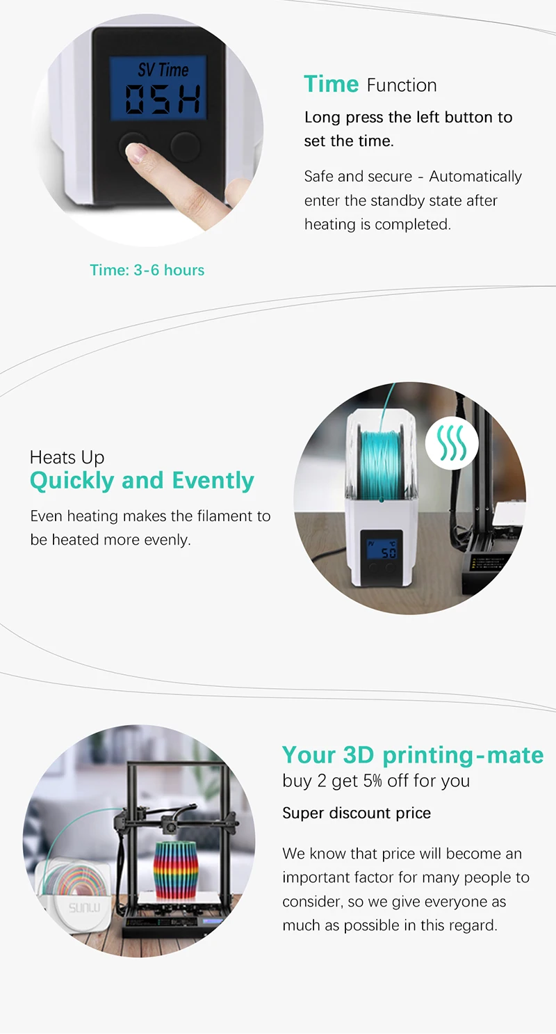 SUNLU 3D нить сухой короб S1 плюс более Равномерная температура встроенный вентилятор Длительное нажатие правый для проверки влажности новое поступление