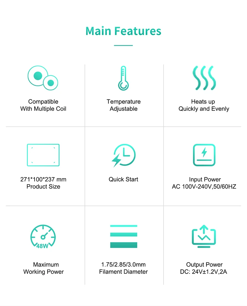 Наименование: сушилка для нити S1 PLUSЦвет: белыйДиапазон температур: 35-55 ℃Штепсельная Вилка: мы выберем вилку в соответствии с вашей странойДиаметр нити: 1,75 мм/2,85 мм/3,00 мм