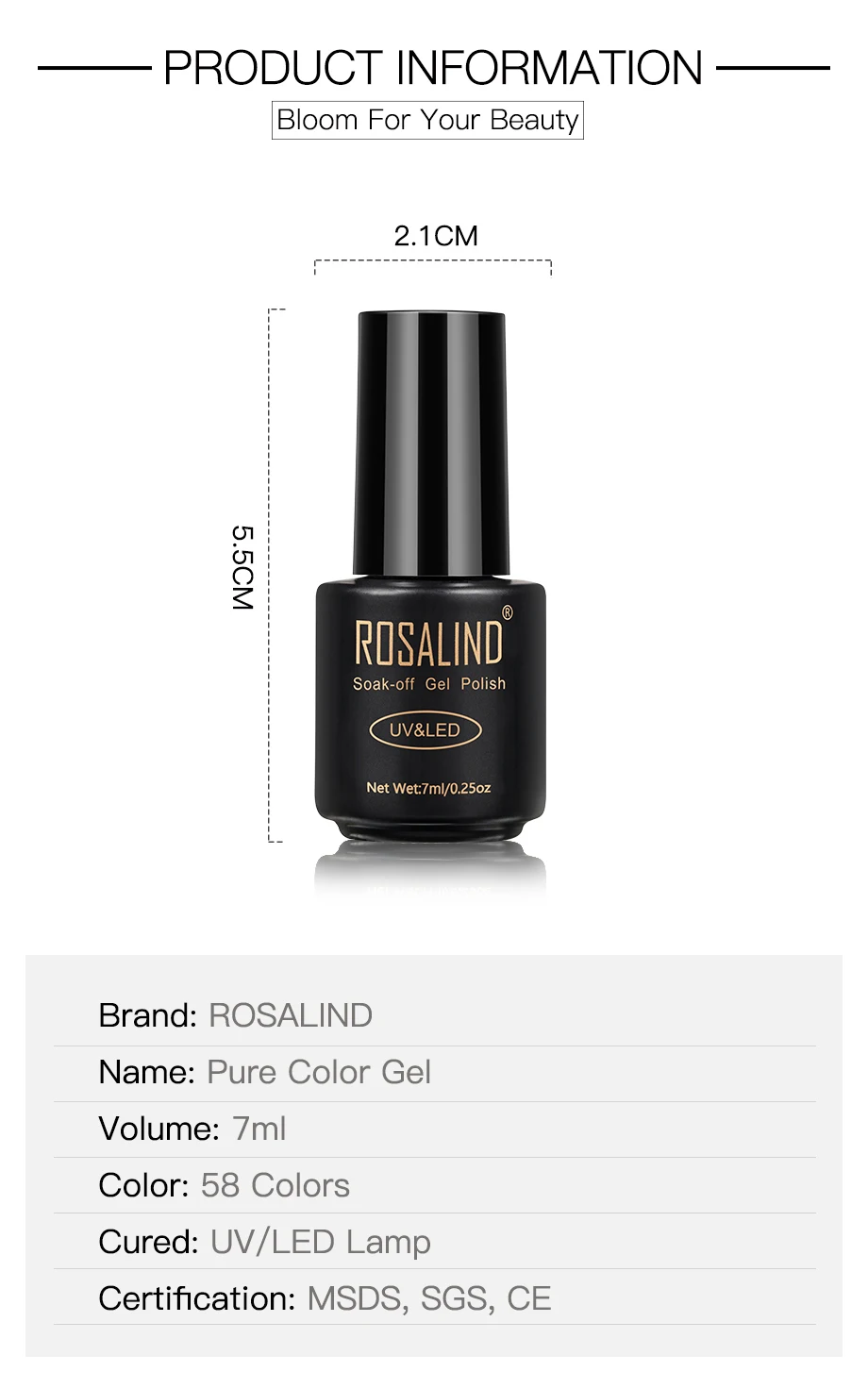 ROSALIND 7 мл отмачиваемый чистый цветной гель для ногтей яркий для дизайна ногтей светодиодный/УФ-лампа
