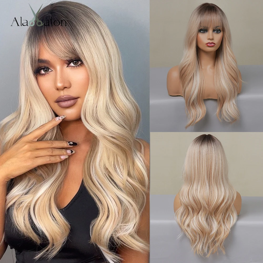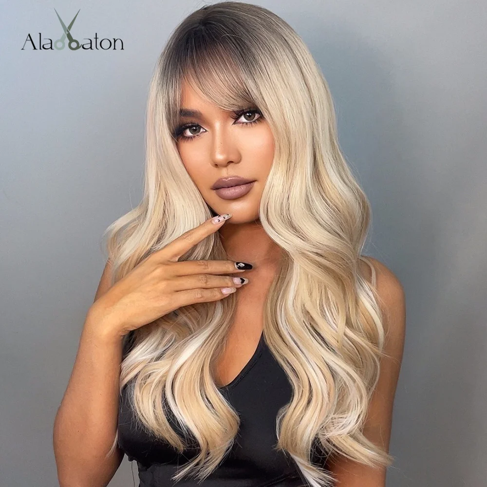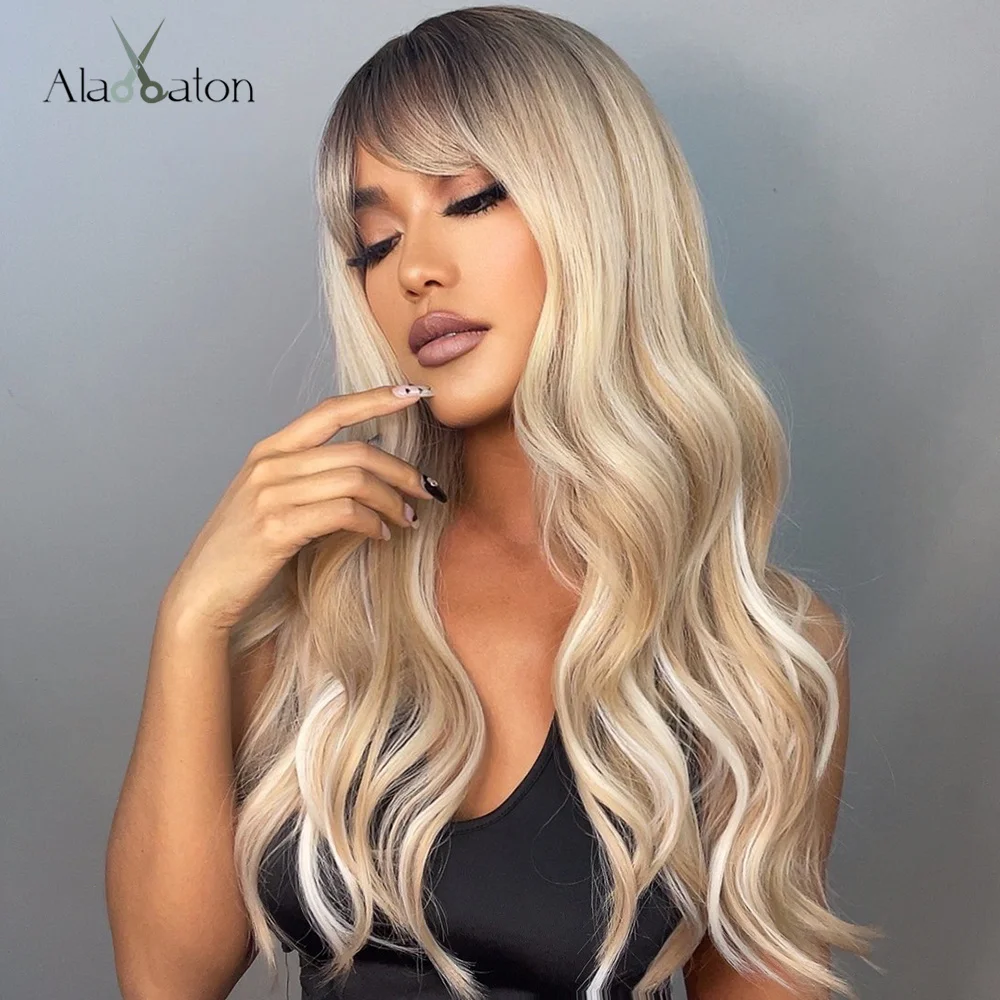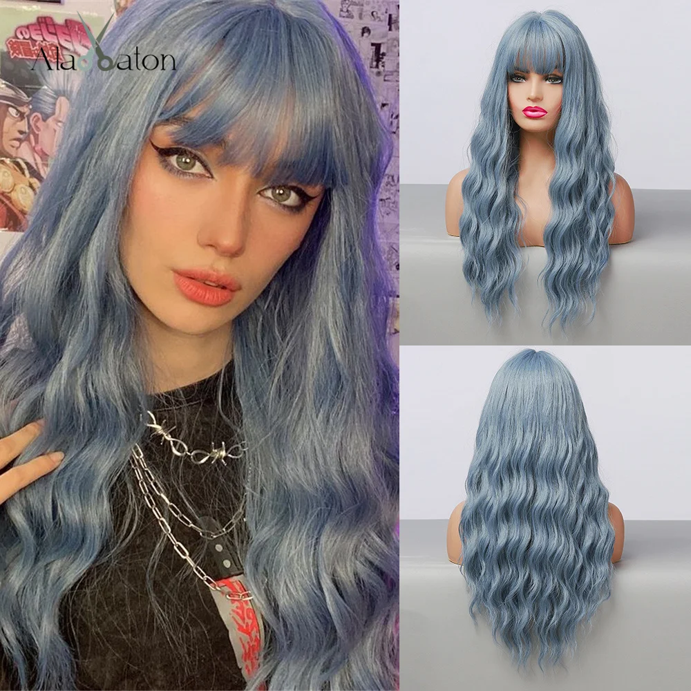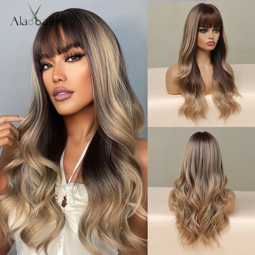 Парики с челкой для женщин, Длинные Синтетические волосы с волнами,...