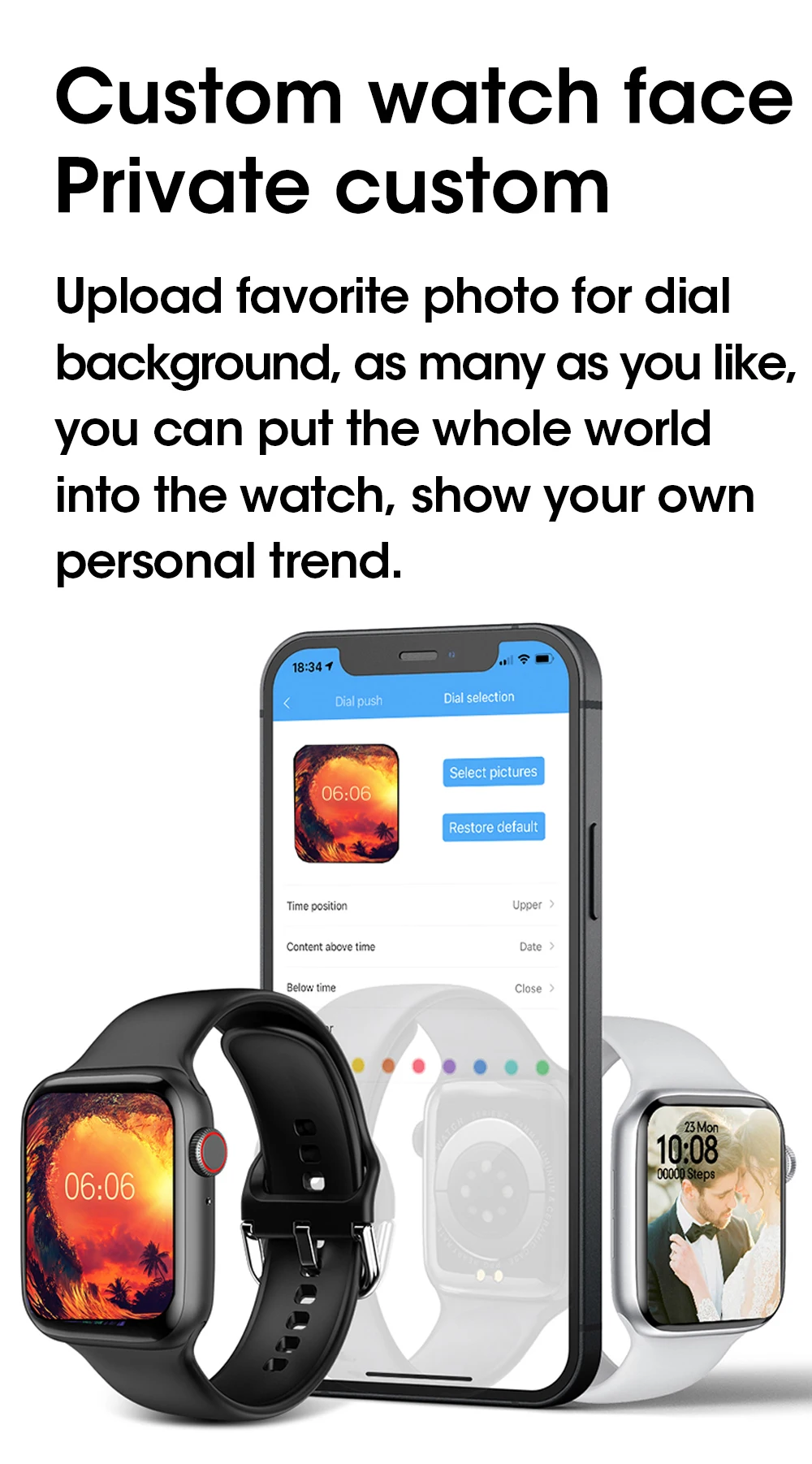 Загрузить любимую фотографию для циферблатаФон, столько, сколько вам нравится,Вы можете поставить весь мирВ часы, покажите свой собственныйЛичный тренд.