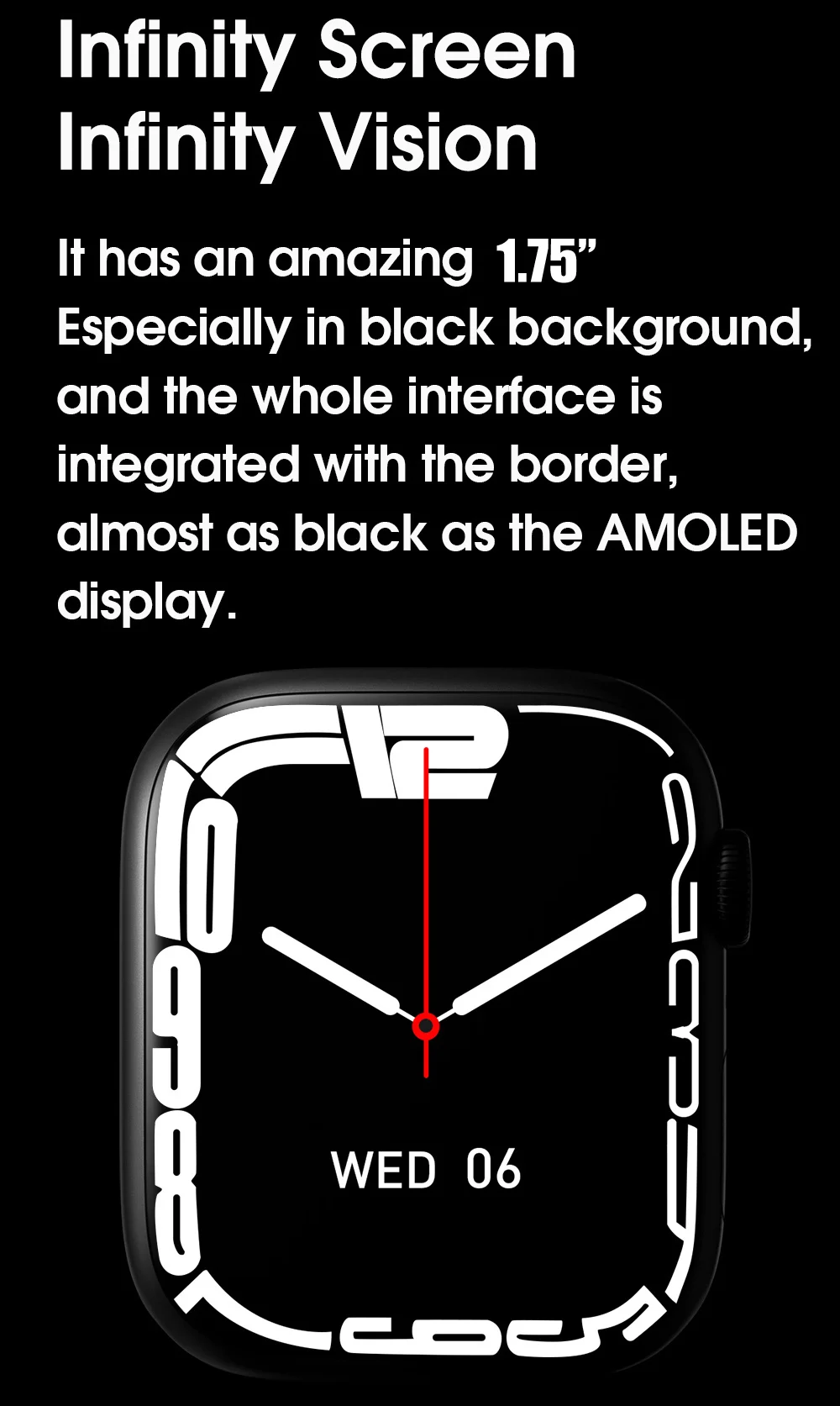 Характеристики часов△CPU:HS6621△Размер: 44*38*10,8 мм△Weight:50 гCharger Зарядное устройство: Магнитный△ Экран: 1,75 дюймов TFT Экран, 320*385 пикселейTouch Сенсорная панель: несколько касанийBattery Батарея: литий-ионный полимерный аккумулятор 230 мАч, 150 минут для полной зарядкиBluetooth:BT3.0 + 5,0△ 2 кнопки.△Waterproof: Водонепроницаемость в течение всего срока эксплуатацииНе использовать в горячей воде или саунеФункция часов● Bluetooth-вызов и ответ● DIY часы dail● Книга звонков● Push-сообщение● Сплит-экран● Измерение пульса и артериального давления● Запись сна● Запись спортивных данных● Будильник, секундомер, управление музыкой, калькулятор, удаленная фотография, защита паролем и т. д.ЯзыкиЯзыки часов:Китайский, традиционный китайский, английский, арабский, французский, немецкий, испанский, португальский, русский, тайский, польский, итальянский, японский, турецкий, греческий, вьетнамский, иврит, персидскийЭкран1,75 дюймовый HD экранРазрешение 320*385 пикселейНасыщенность цвета 80%Особенно в черном фоне и весь интерфейс интегрирован с каймой почти так же черный, как дисплей AMOLED.