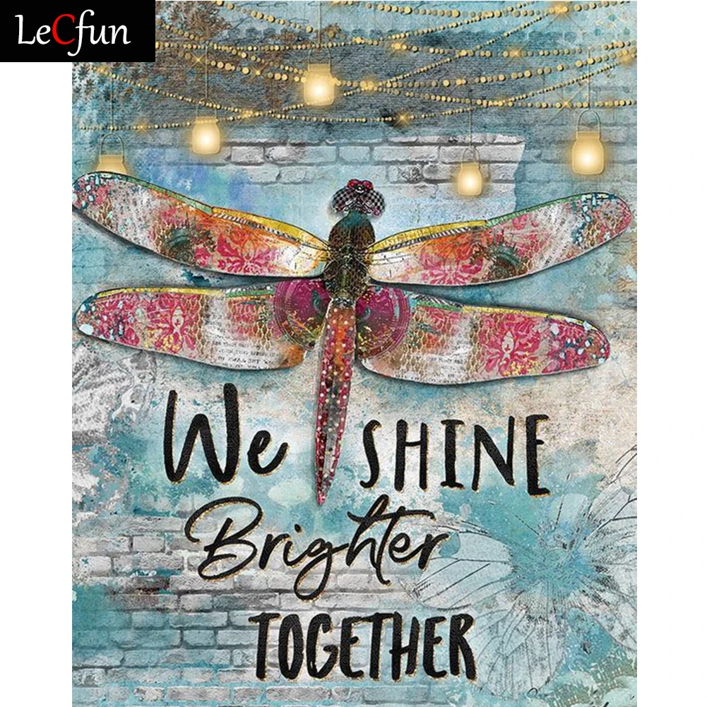 Набор для алмазной живописи LeCfun со словами стрекозы, 5D полное сверление, алмазы, искусство, квадратныйкруглый драгоценный камень, стразы, вышивка крестиком, домашний декор