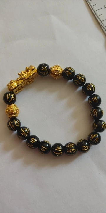 Браслет фэн-шуй пи сюй обсидиан с бусинами из черного камня мужской...