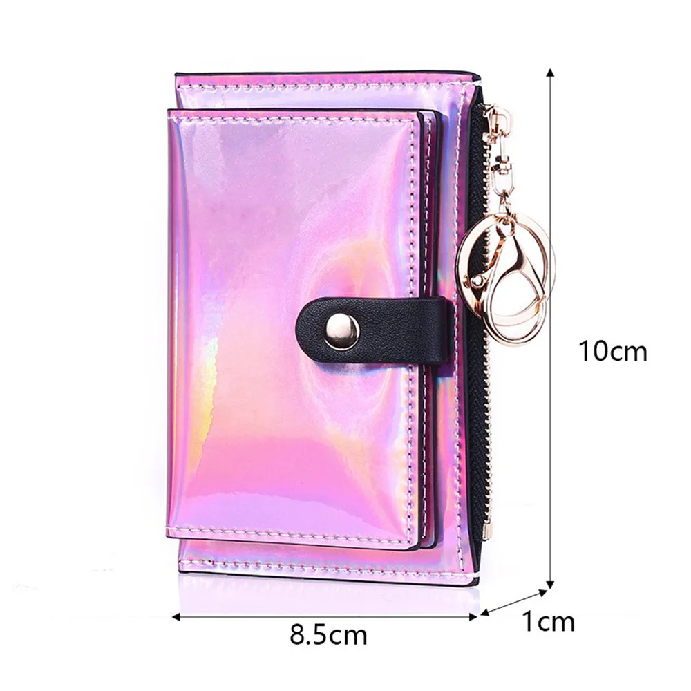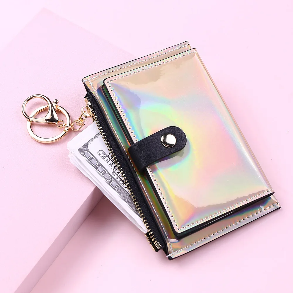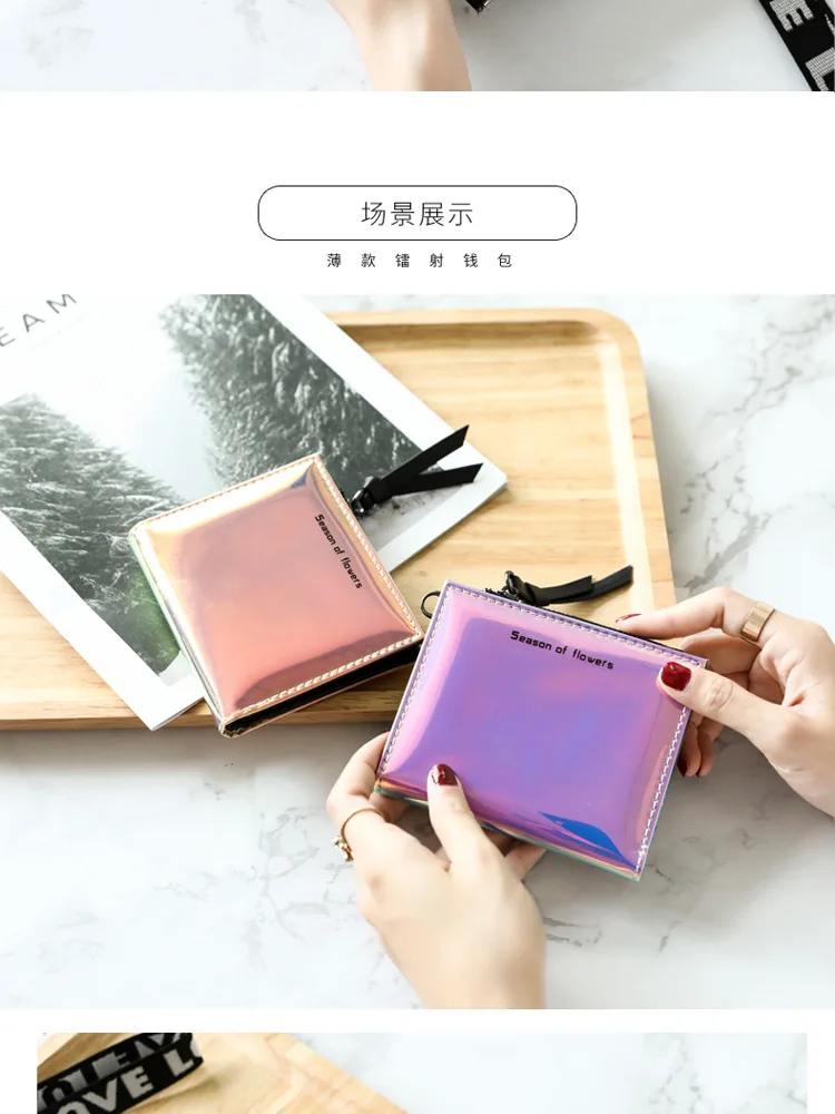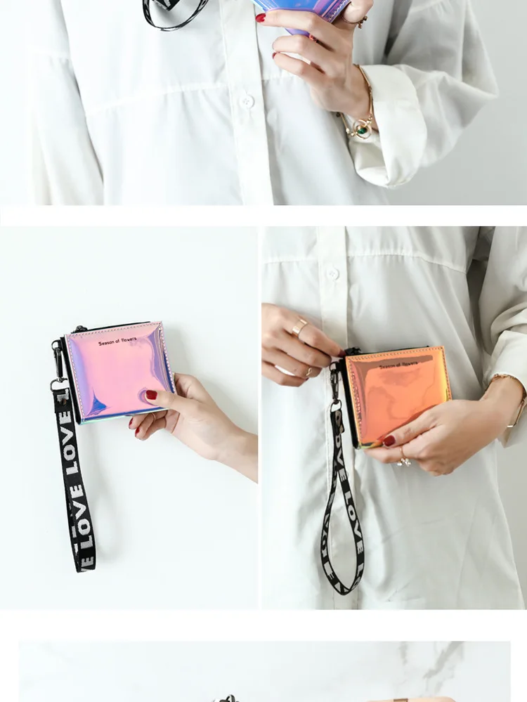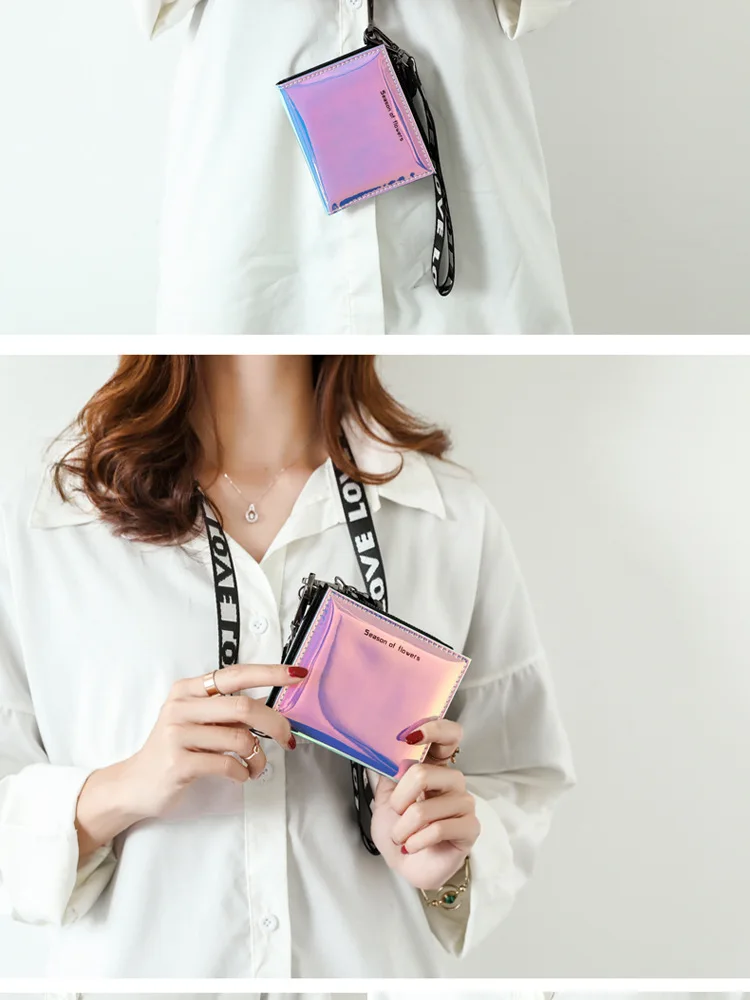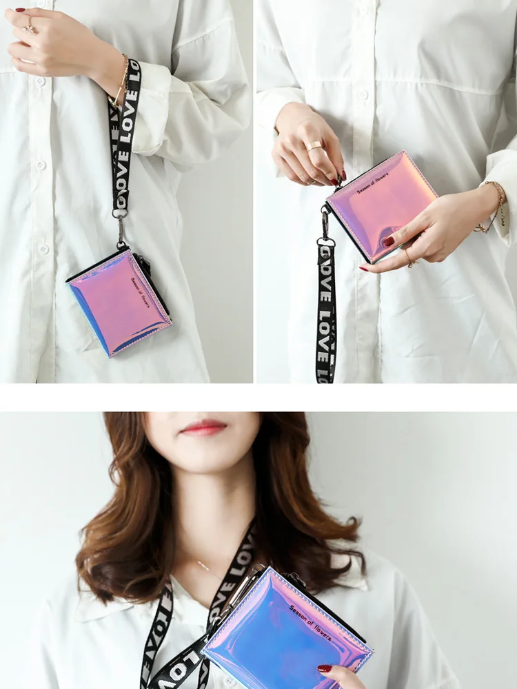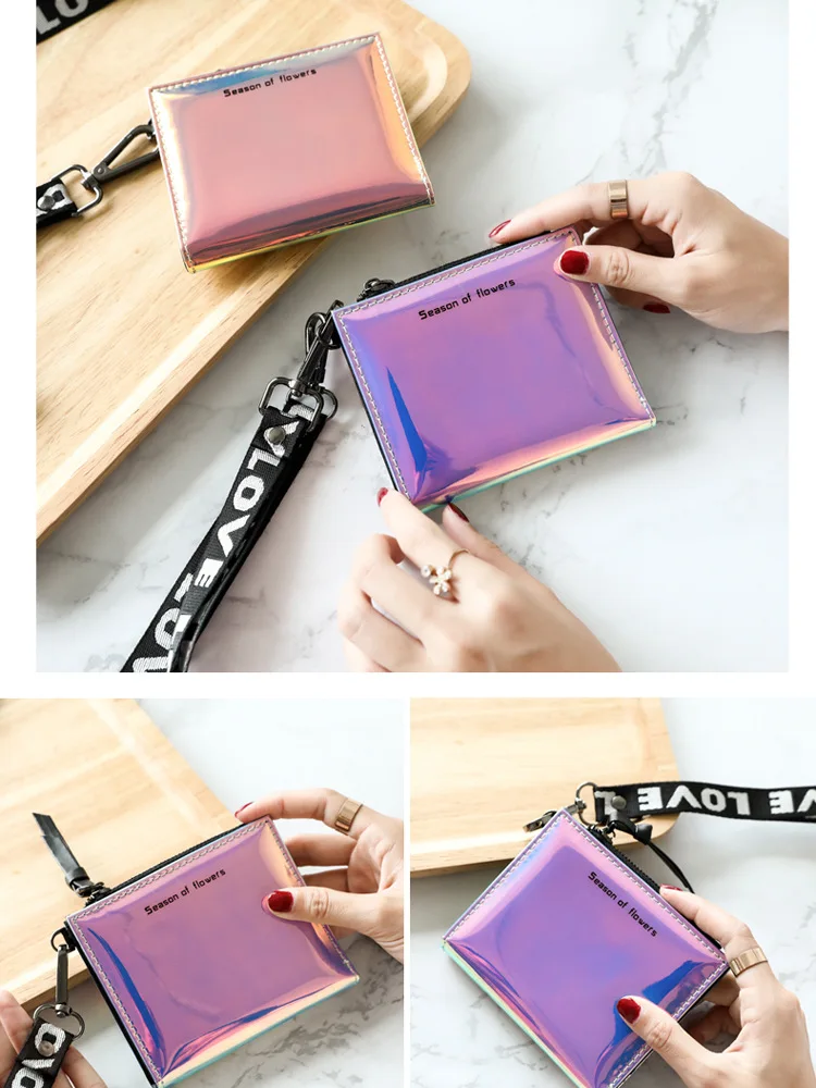 Модный маленький кошелек для женщин, короткие тонкие кошельки с ремешком на руку, дамская сумочка для денег, корейский женский кошелек с голографическим рисунком, тонкий кошелек 2022
