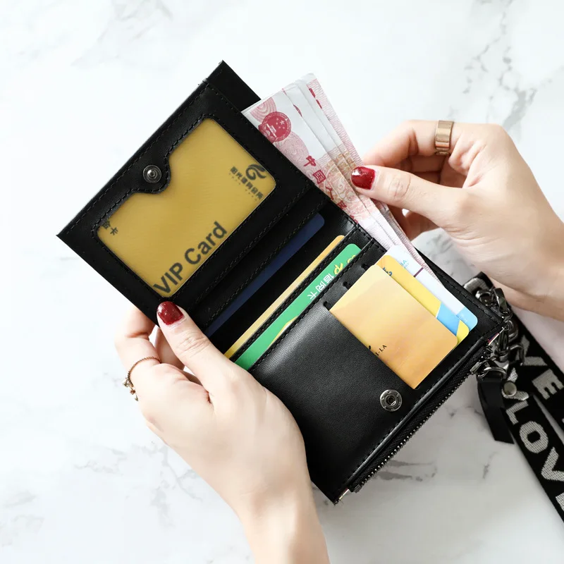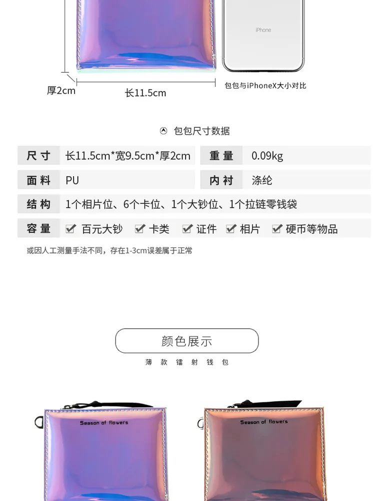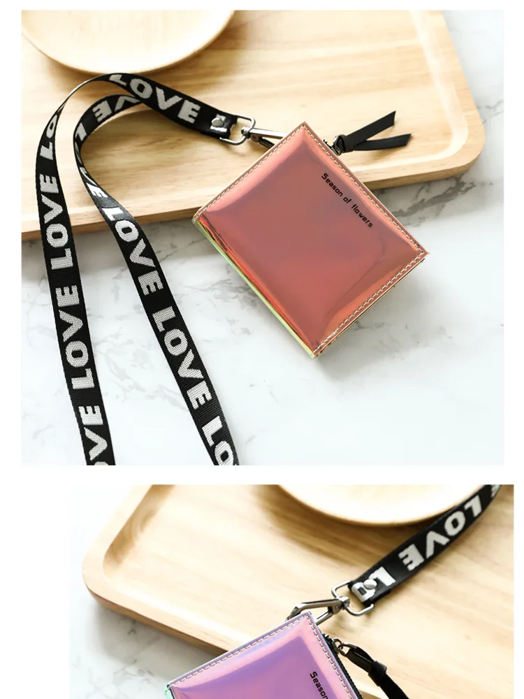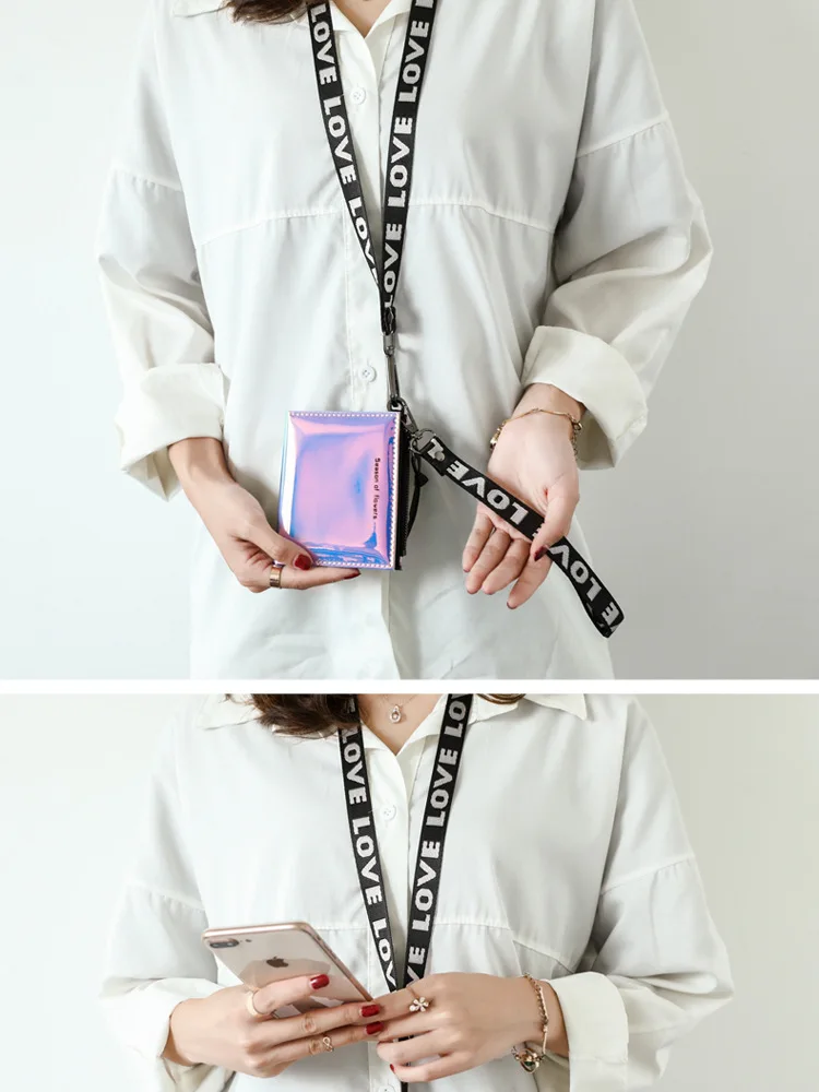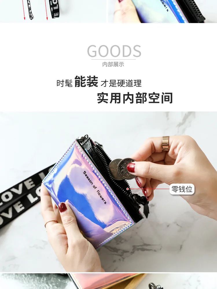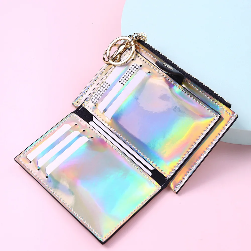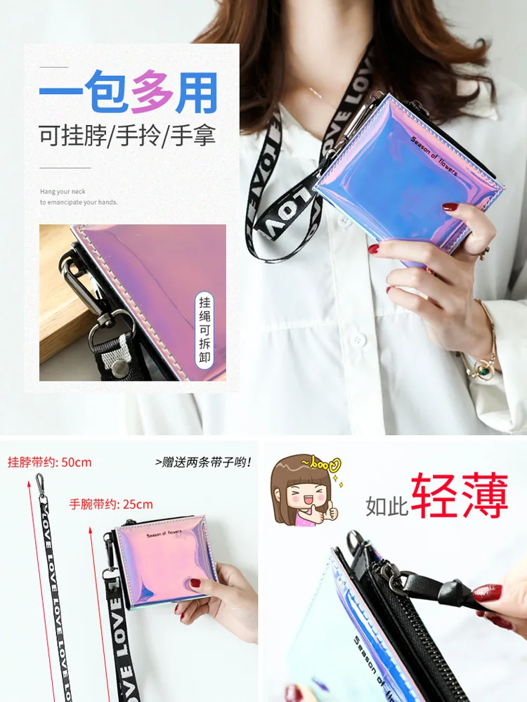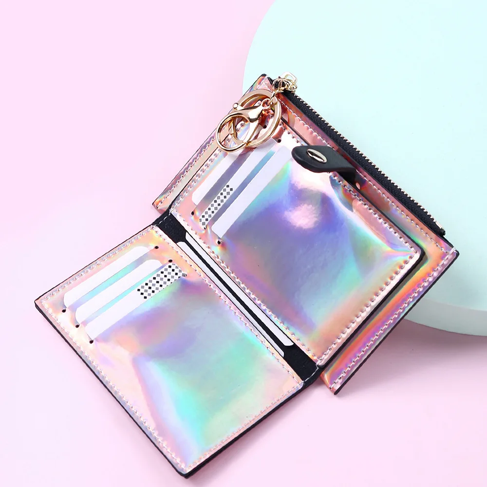 Модный маленький кошелек для женщин, короткие тонкие кошельки с ремешком на руку, дамская сумочка для денег, корейский женский кошелек с голографическим рисунком, тонкий кошелек 2022