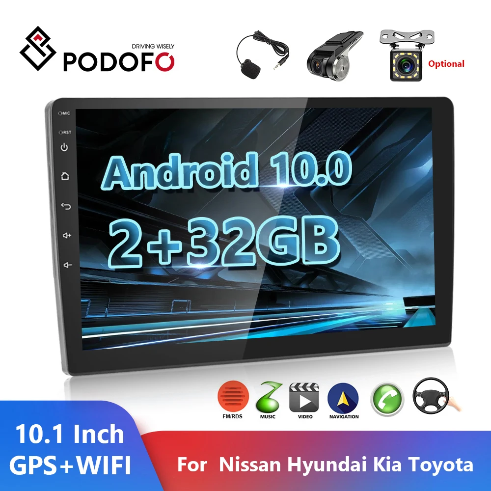 Podofo Android 2 Din Автомобильный Радио микрофон GPS Wifi стерео приемник для Toyota Volkswagen Hyundai Киа Renault Suzuki Ford Lada