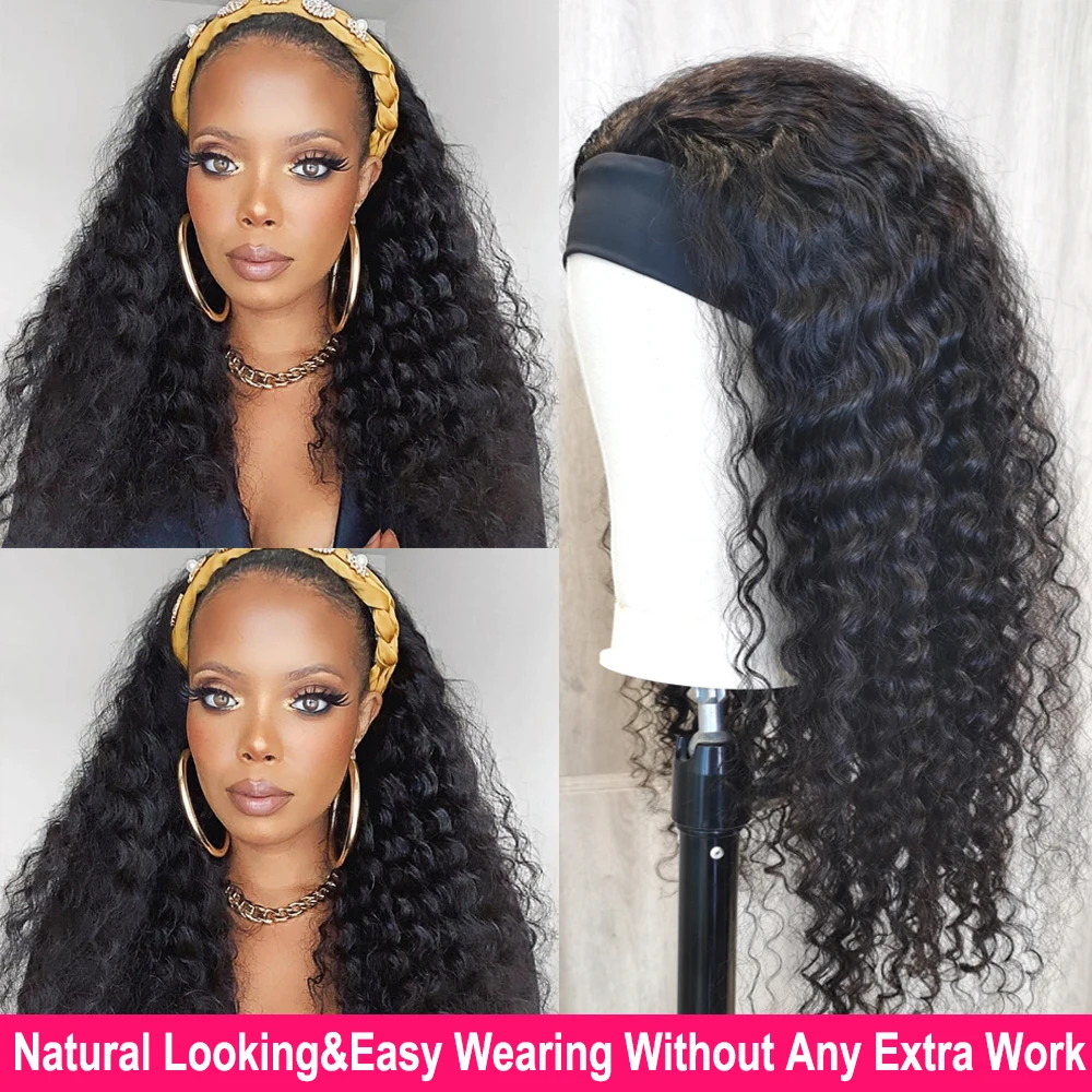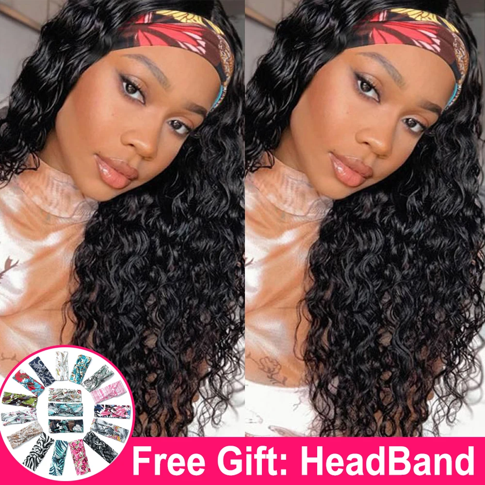Парик из парик с головной повязкой натуральных кудрявых волос, без ...