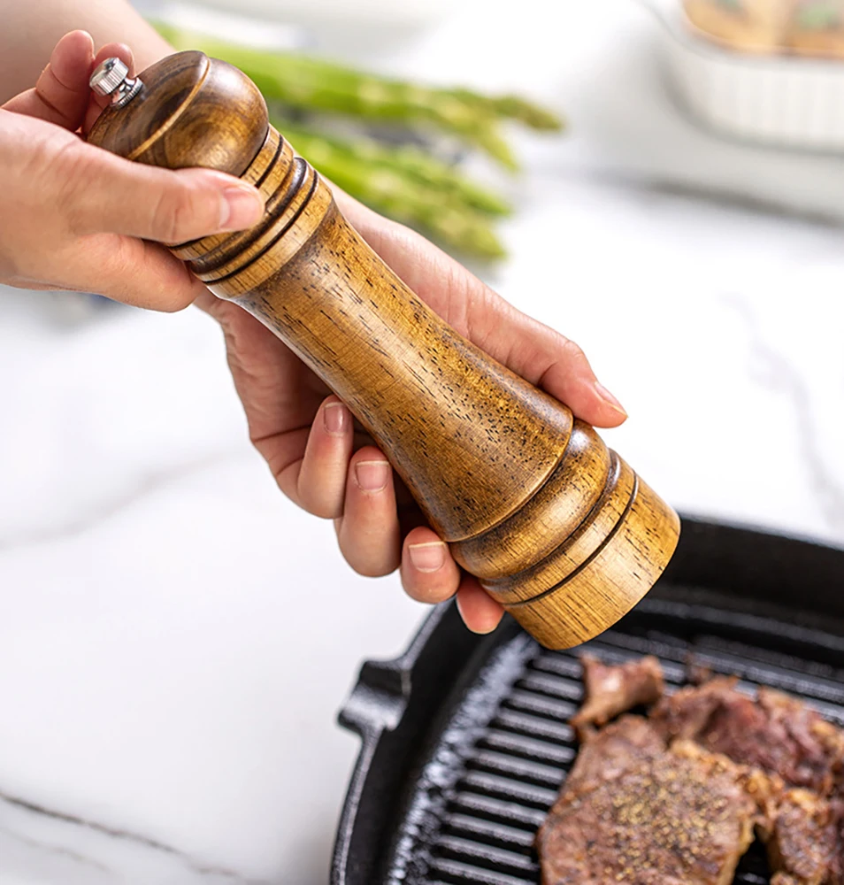 Мельница для соли и перца, измельчитель для специй из твердой древесины, Регулируемый Керамический измельчитель, кухонные приборы, 5 8 10 дюймов