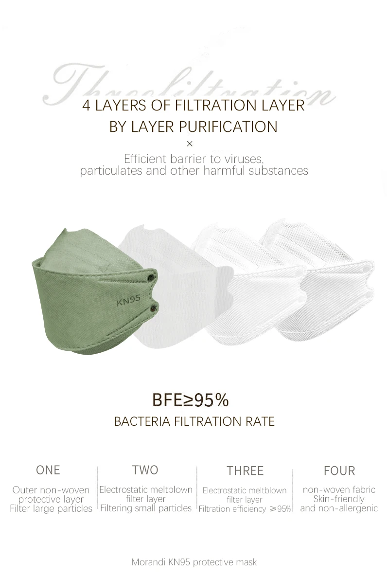 Маска KN95 для рыбы, маски FPP2 для взрослых Morandi FFP2mask, 4-сл...