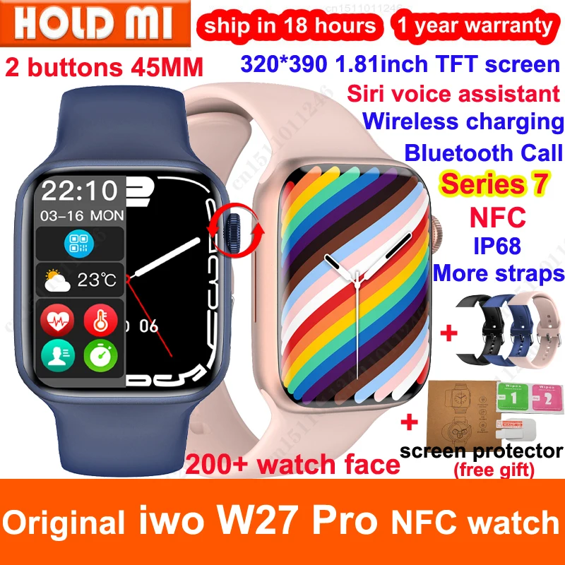 100% Оригинальные iwo W27 Pro Смарт-часы NFC Функция Siri 45 мм серия 7 ECG Bluetooth Вызов Smartwatch Беспроводное зарядное устройство IP68 водонепроницаемый