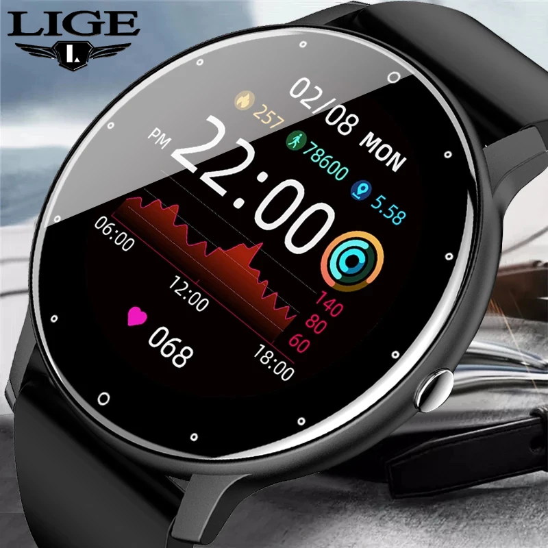 Смарт-часы LIGE мужские водонепроницаемые, спортивные фитнес-часы с сенсорным экраном, Bluetooth, для Android и IOS