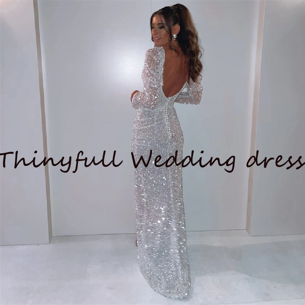 Роскошные пляжные свадебные платья с блестками и бисером 2022, свадебные платья с открытой спиной и длинными рукавами, свадебные бальные платья для невесты в сельском стиле, принцессы