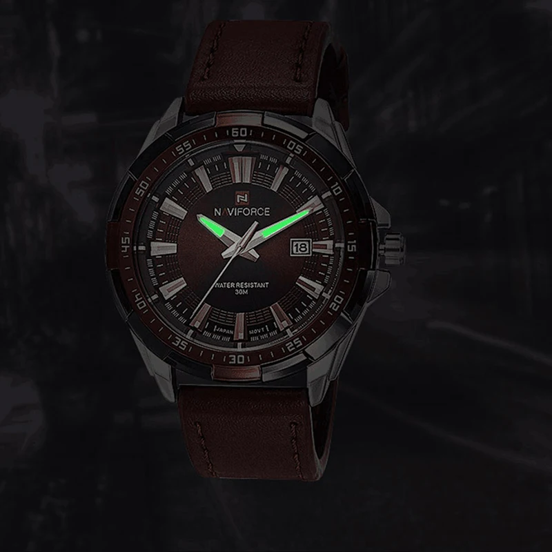 Часы наручные NAVIFORCE Мужские кварцевые, роскошные спортивные военные водонепроницаемые Модные деловые, с кожаным ремешком