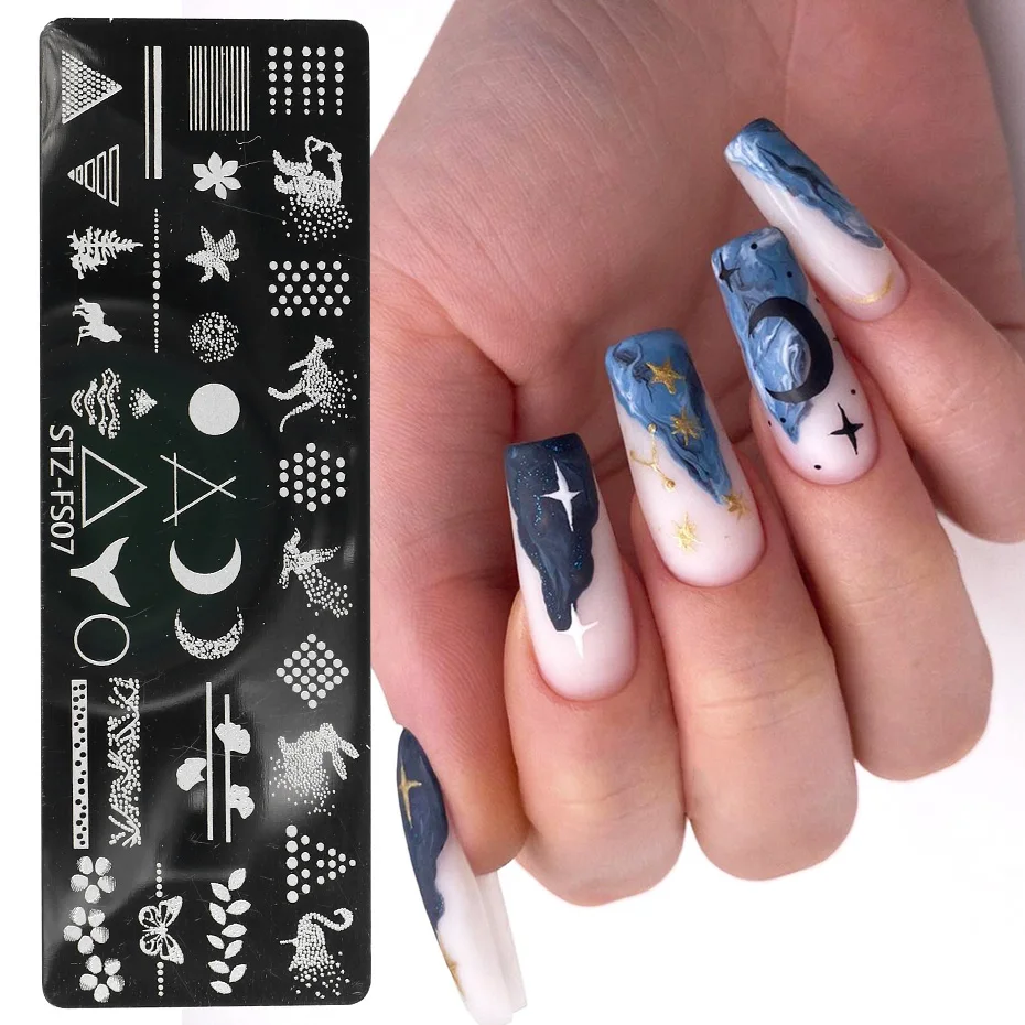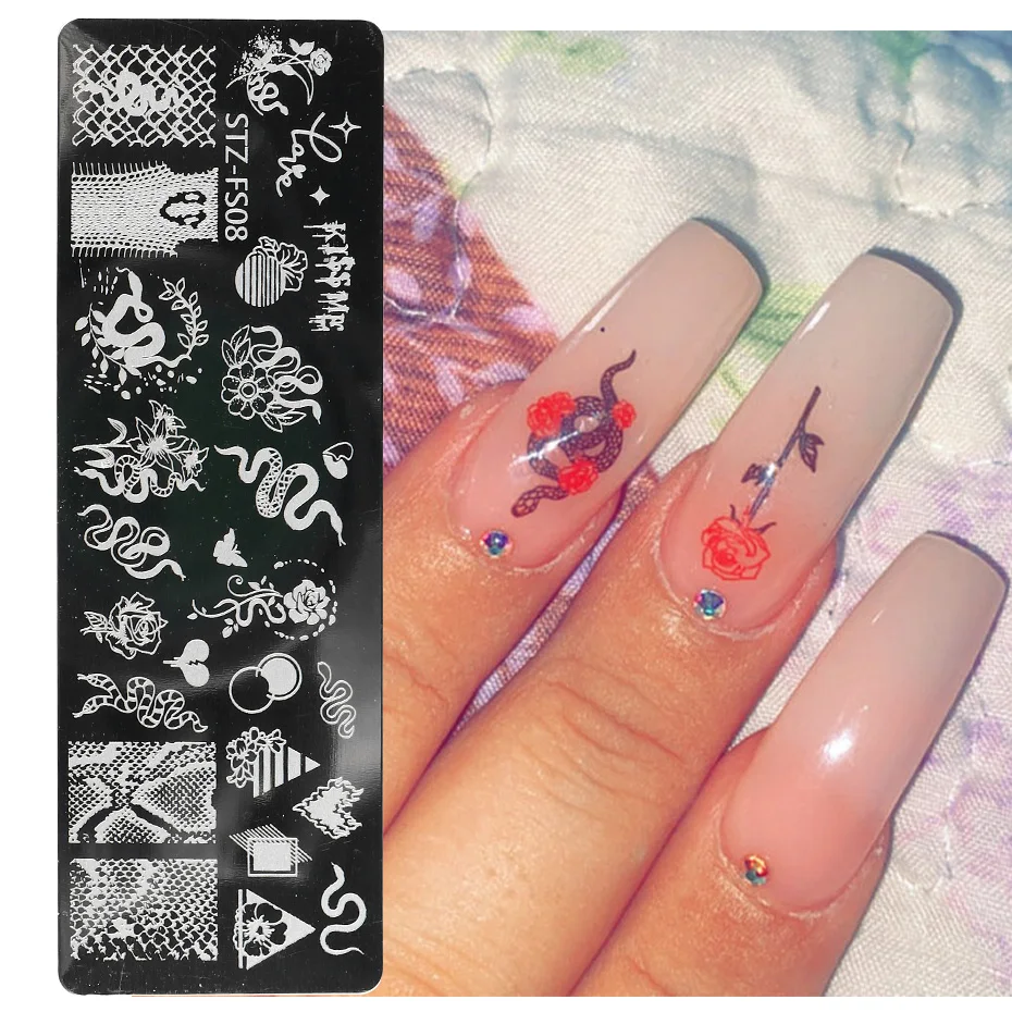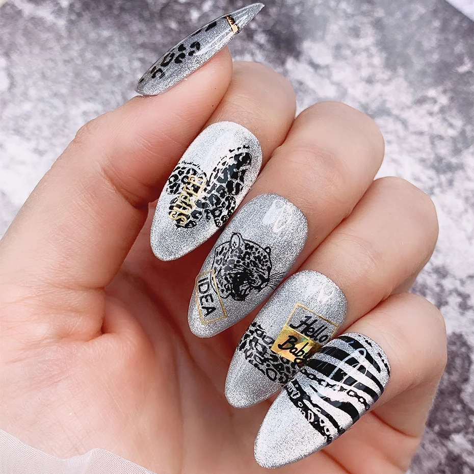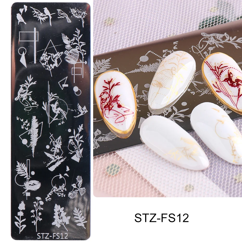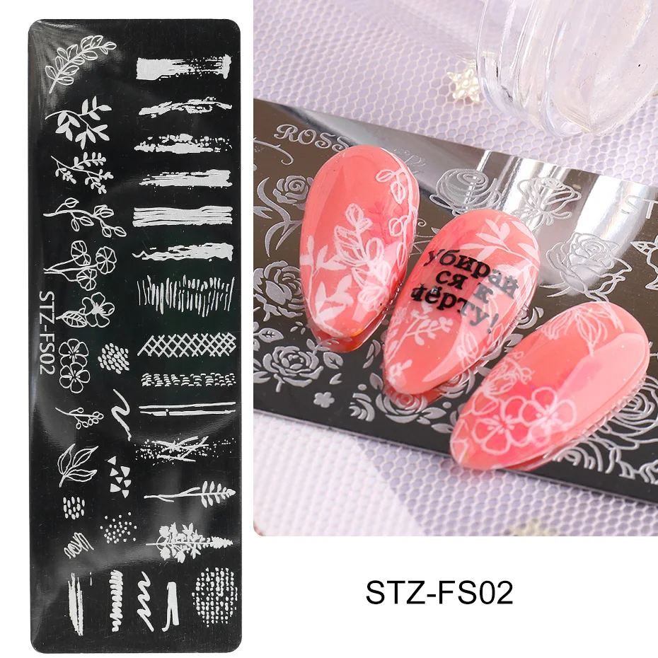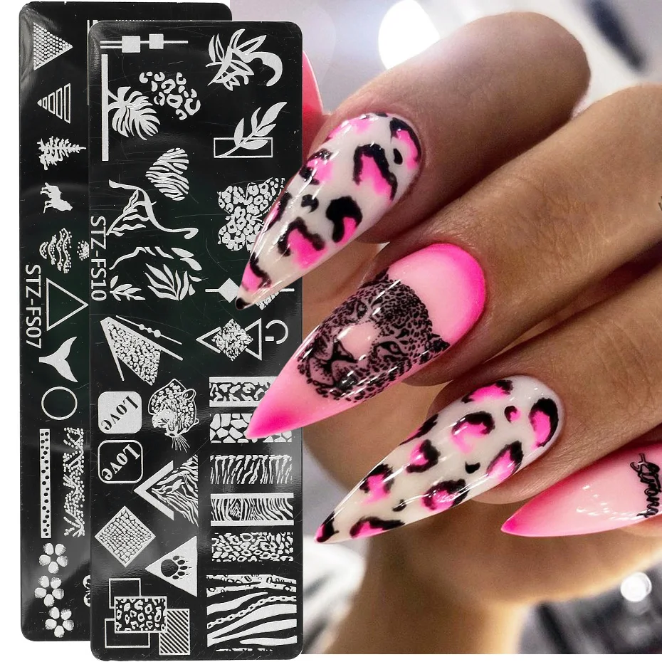 Леопардовые печатные пластины для стемпинга ногтей, геометрические цветы для дизайна ногтей, печать, штампы, полировка, шаблоны, трафареты для маникюра, TRSTZFS10