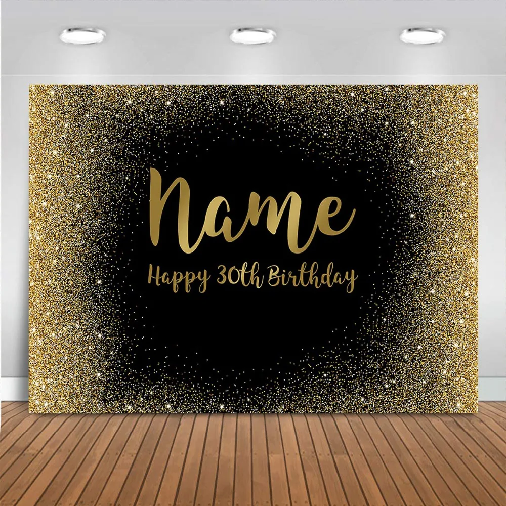 Mocsicka баннер на день рождения с именем на заказ фон Синий Золотой Черный Блестящий Золотой горошек декорация на годовщину