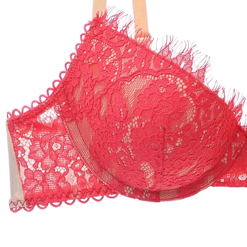 Женский красный комплект с бюстгальтером и трусиками, французское нижнее белье, тонкие кружевные комплекты нижнего белья, женский бюстгальтер пуш-ап, сексуальный бюстгальтер для ресниц