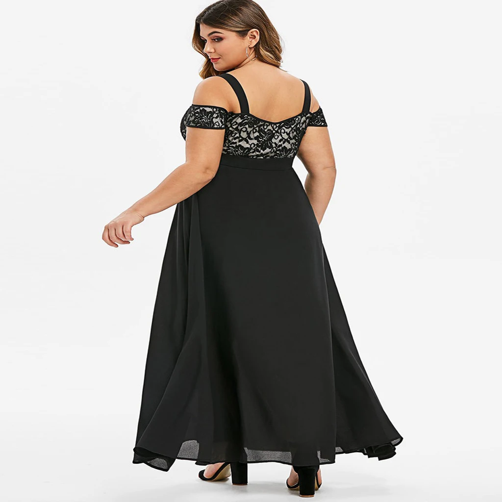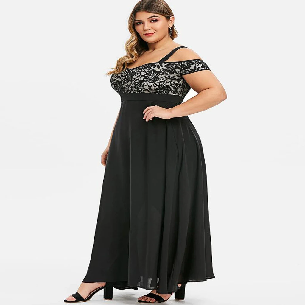Женское длинное платье с открытыми плечами, длинное вечернее платье с цветочным кружевом, большие размеры