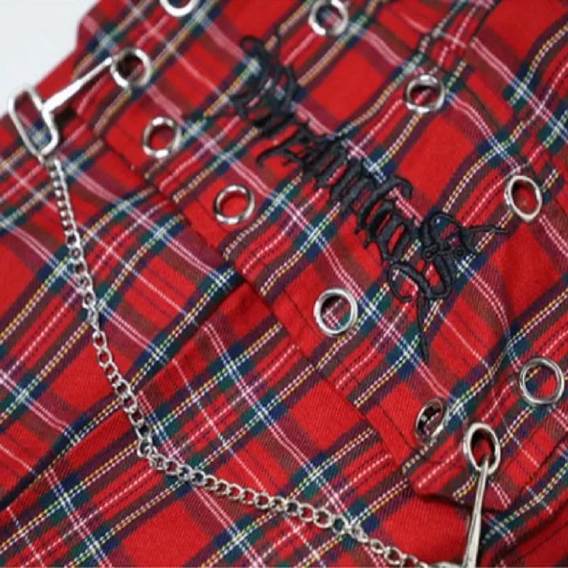 Брюки-карго женские в клетку, в стиле Харадзюку, с цепью
