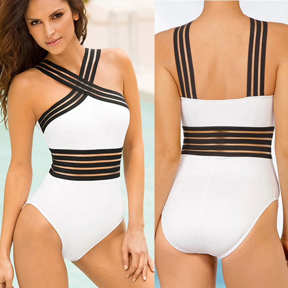 Сексуальный сплошной цвет цельный купальник женский простой прозрач...