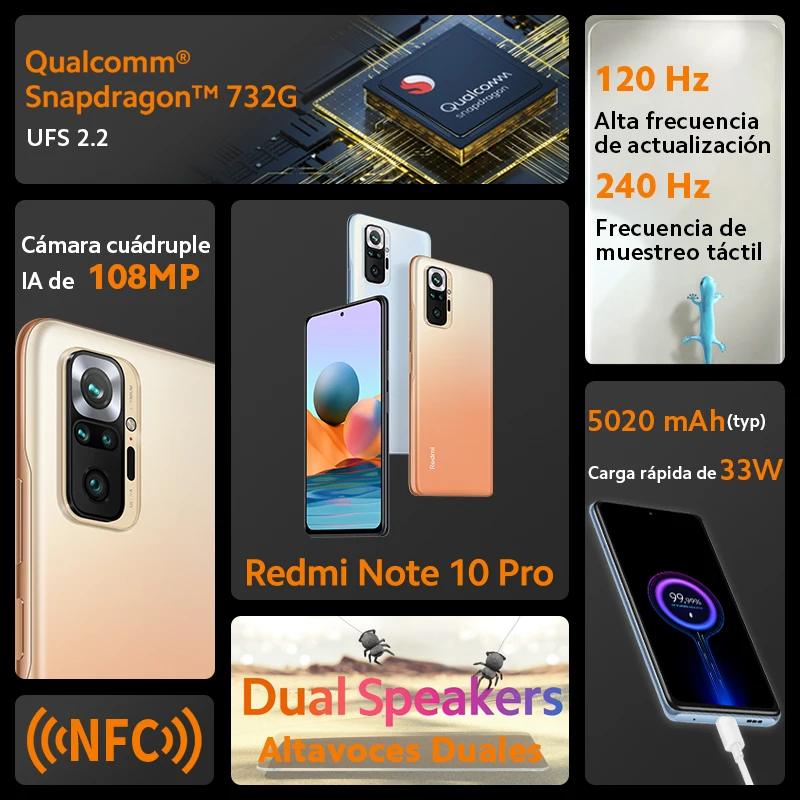 Смартфон Xiaomi Redmi Note 10 Pro, камера 732 МП, Восьмиядерный процессор Snapdragon 6,67G, экран 120 дюйма, Гц