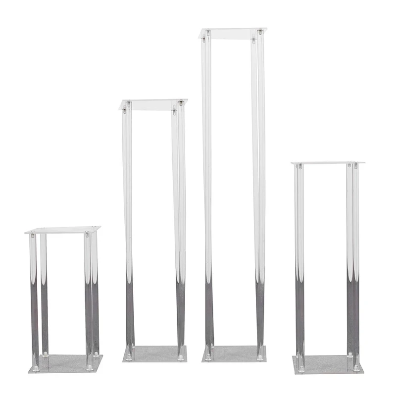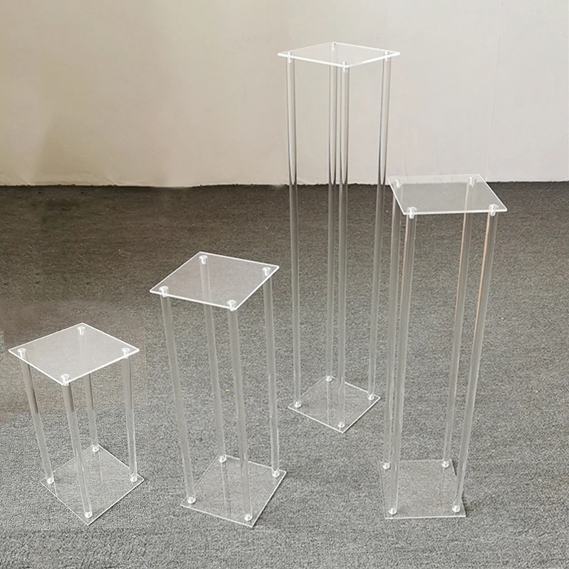 Прозрачная акриловая напольная ваза, Цветочная подставка с зеркальной основой, свадебная колонка, геометрический центральный элемент