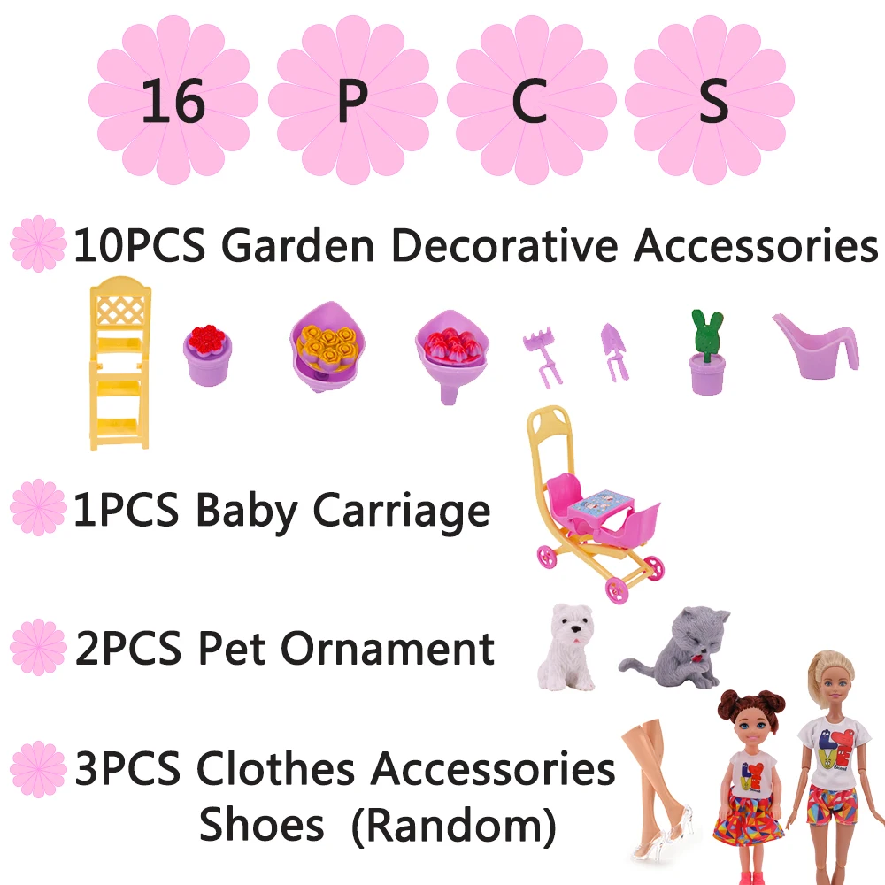 Барби Кукла мебель Игрушки Коляска садовый Декор Аксессуары для 5-дюймовой куклы Келли 16 BJD, модная Кукла одежда обувь наборы