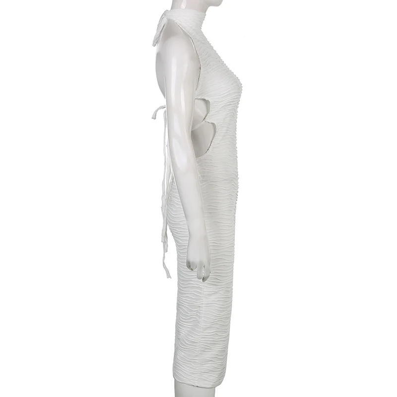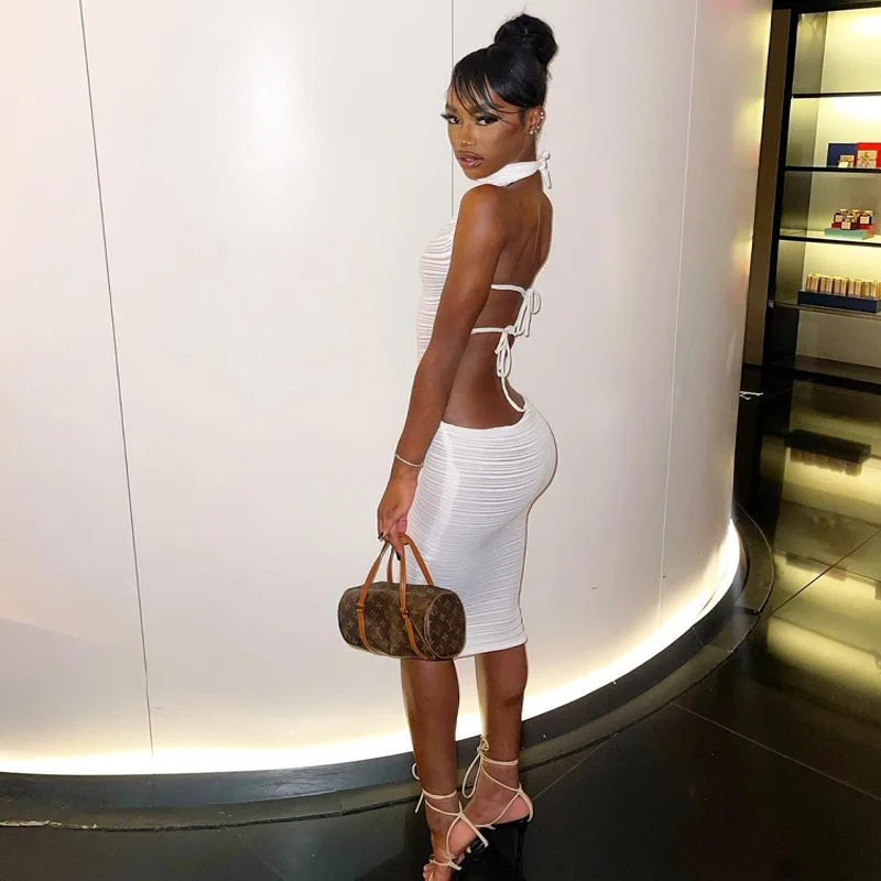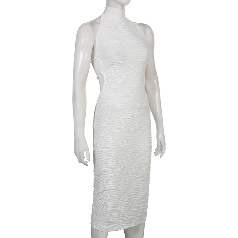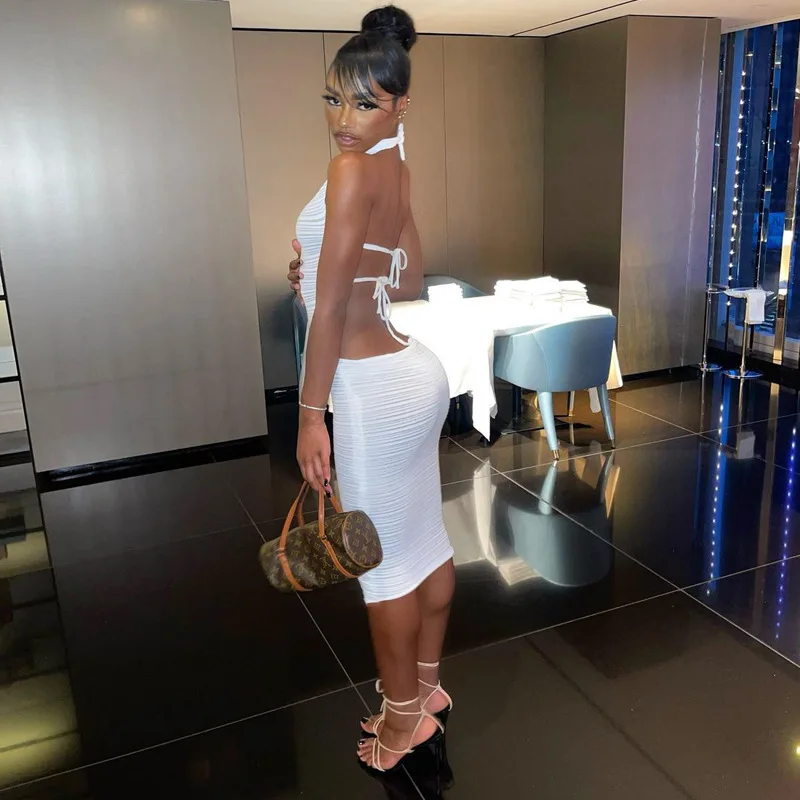 BIIKPIIK однотонные Повседневные платья со складками и открытой спиной на шнуровке с лямкой на шее Женская модная уличная одежда без рукавов длиной до колена платье-футляр