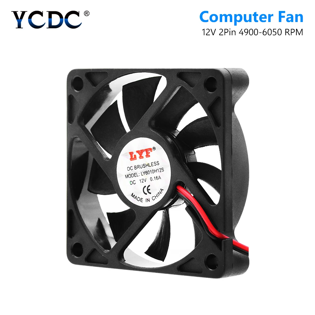 Вентилятор для компьютера, 2 контакта, 6 см, 60 мм, 6010 дюйма, 12 В, а