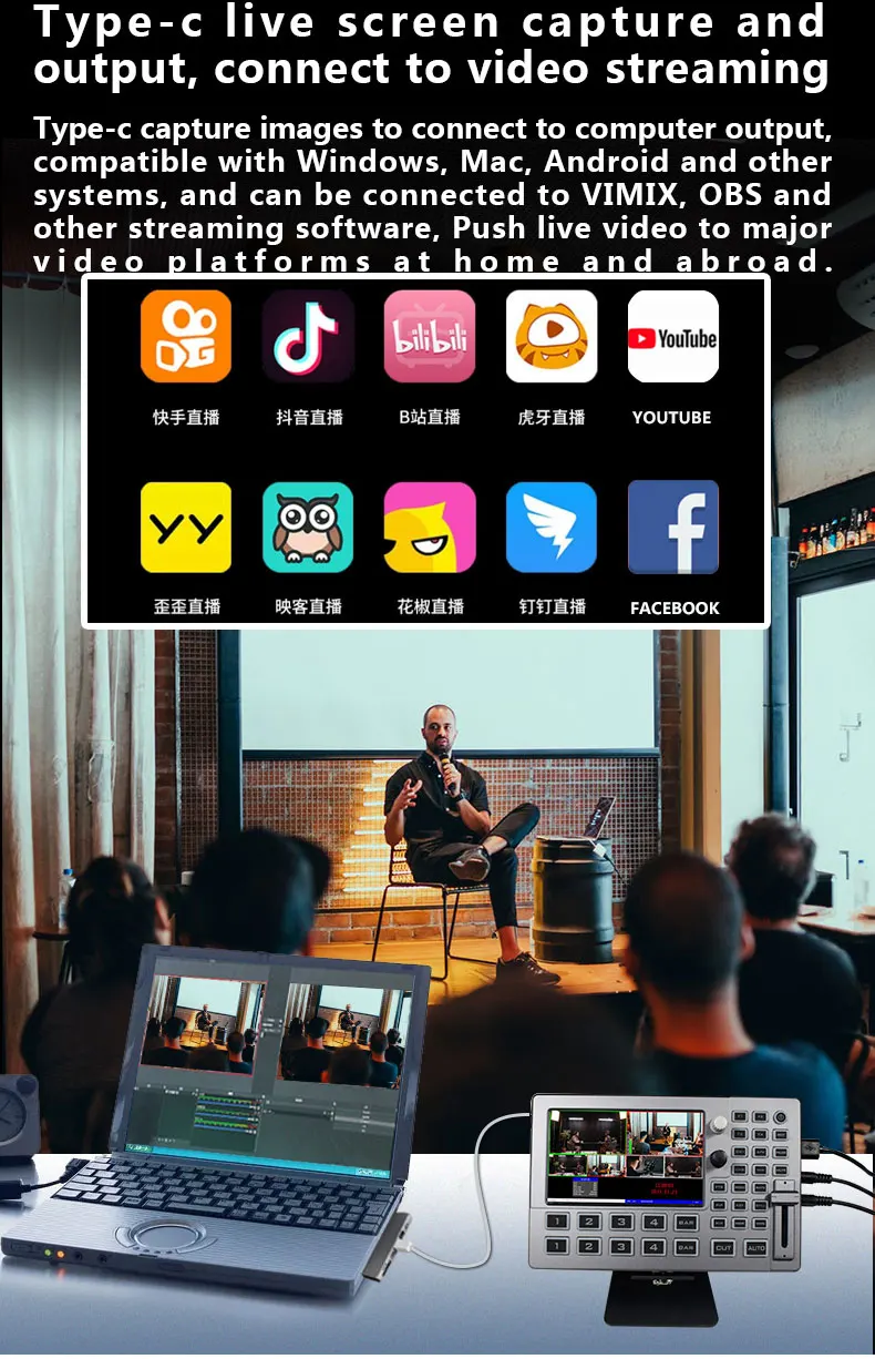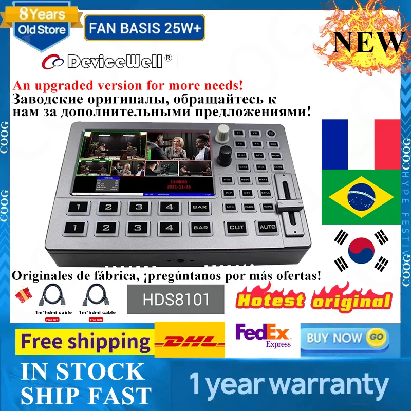 В наличии DeviceWell HDS8101 видеопереключатель 5-дюймовый Full-HD ЖК-дисплей 4-канальные кнопки аудио Follow Mix PK LIVEPRO L1 PLUS