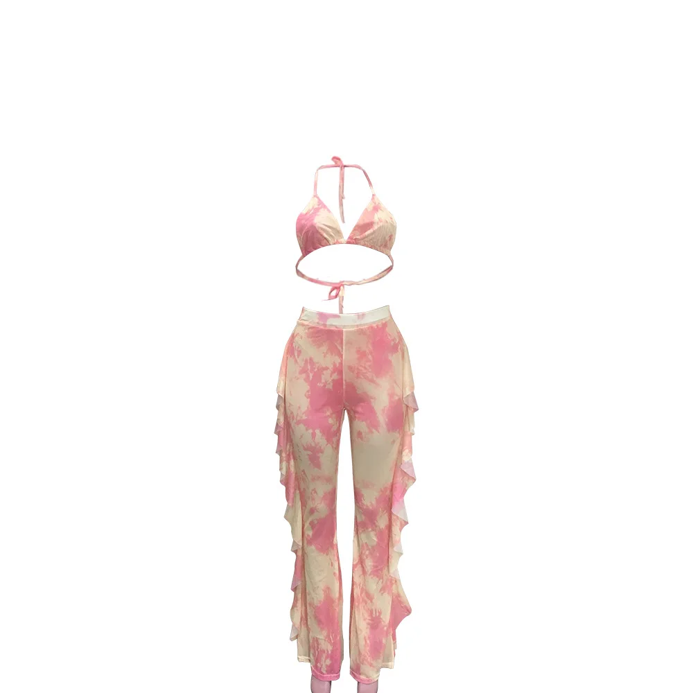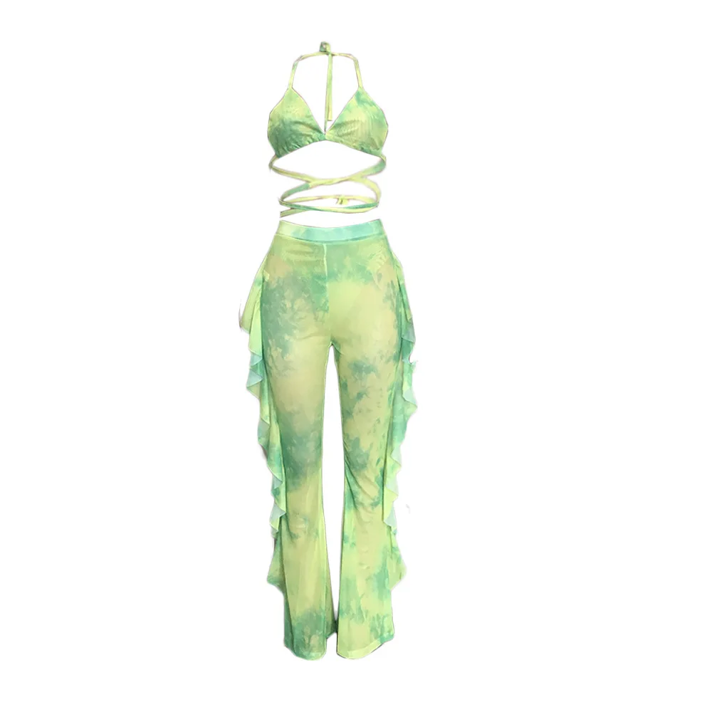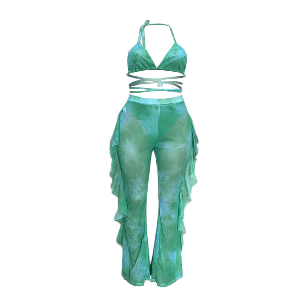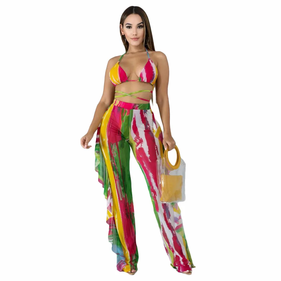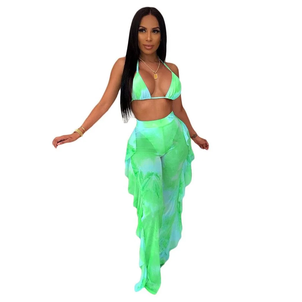 Новый купальник из шифона с широкими штанинами и акварельными сетчатыми вставками, привлекательный купальник-бикини из трех предметов для отпуска